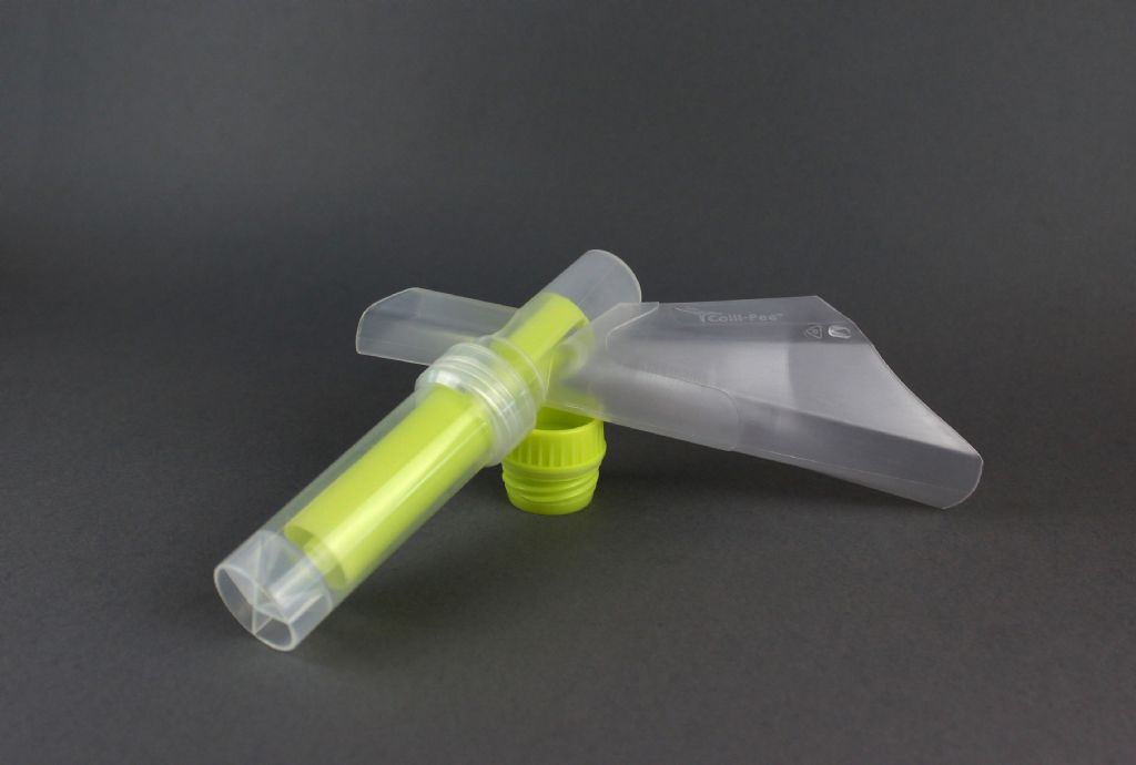 Deze gaat naar de Colli-Pee, ontwikkeld voor Novasanis door Voxdale. Het is een slim toestelletje om plas op te vangen voor onderzoek.