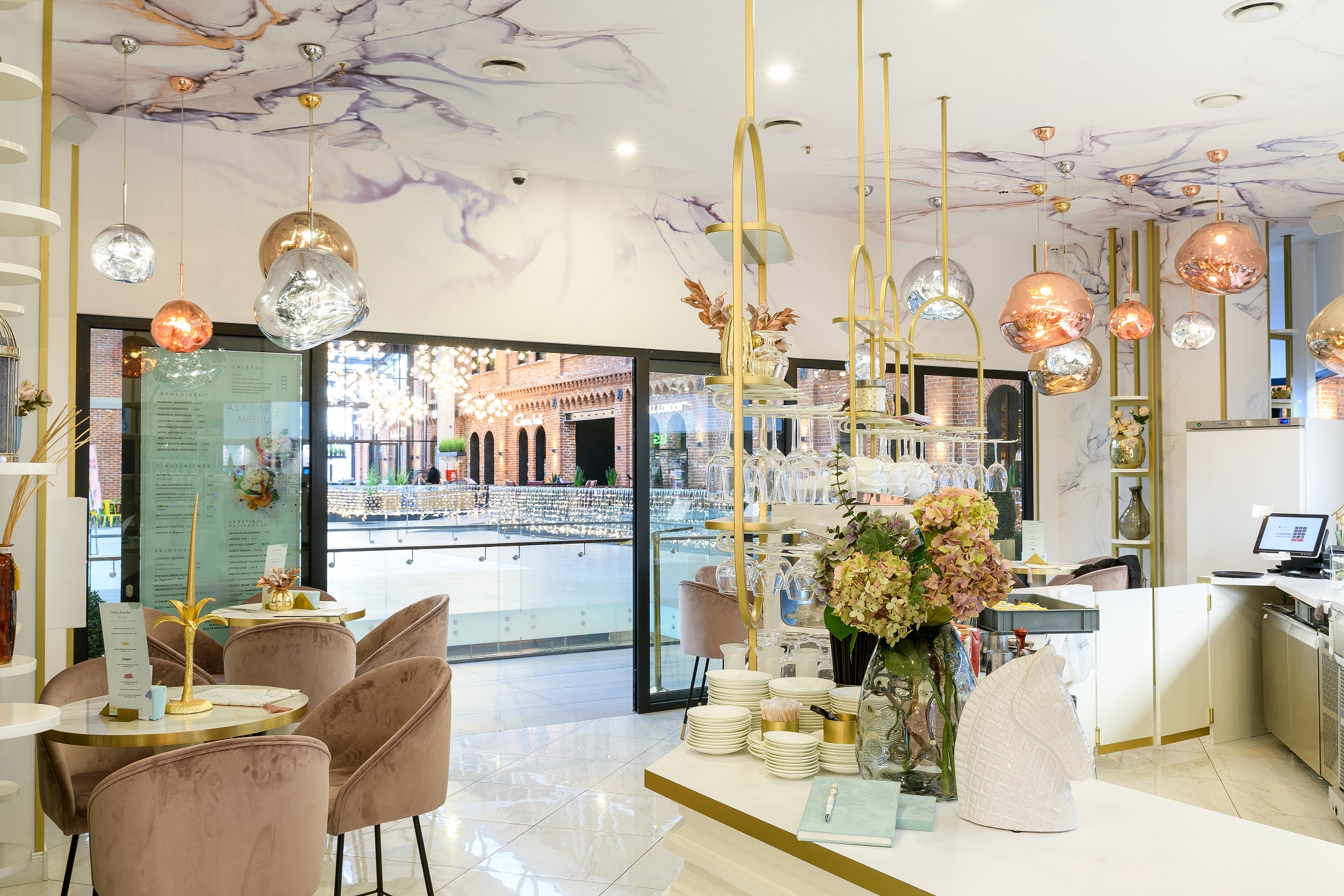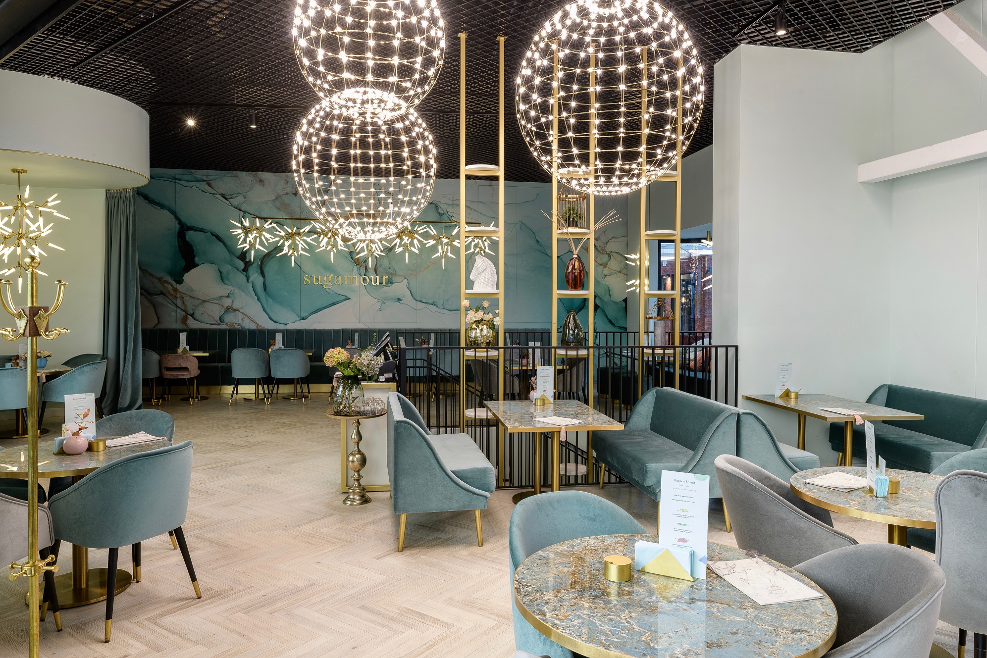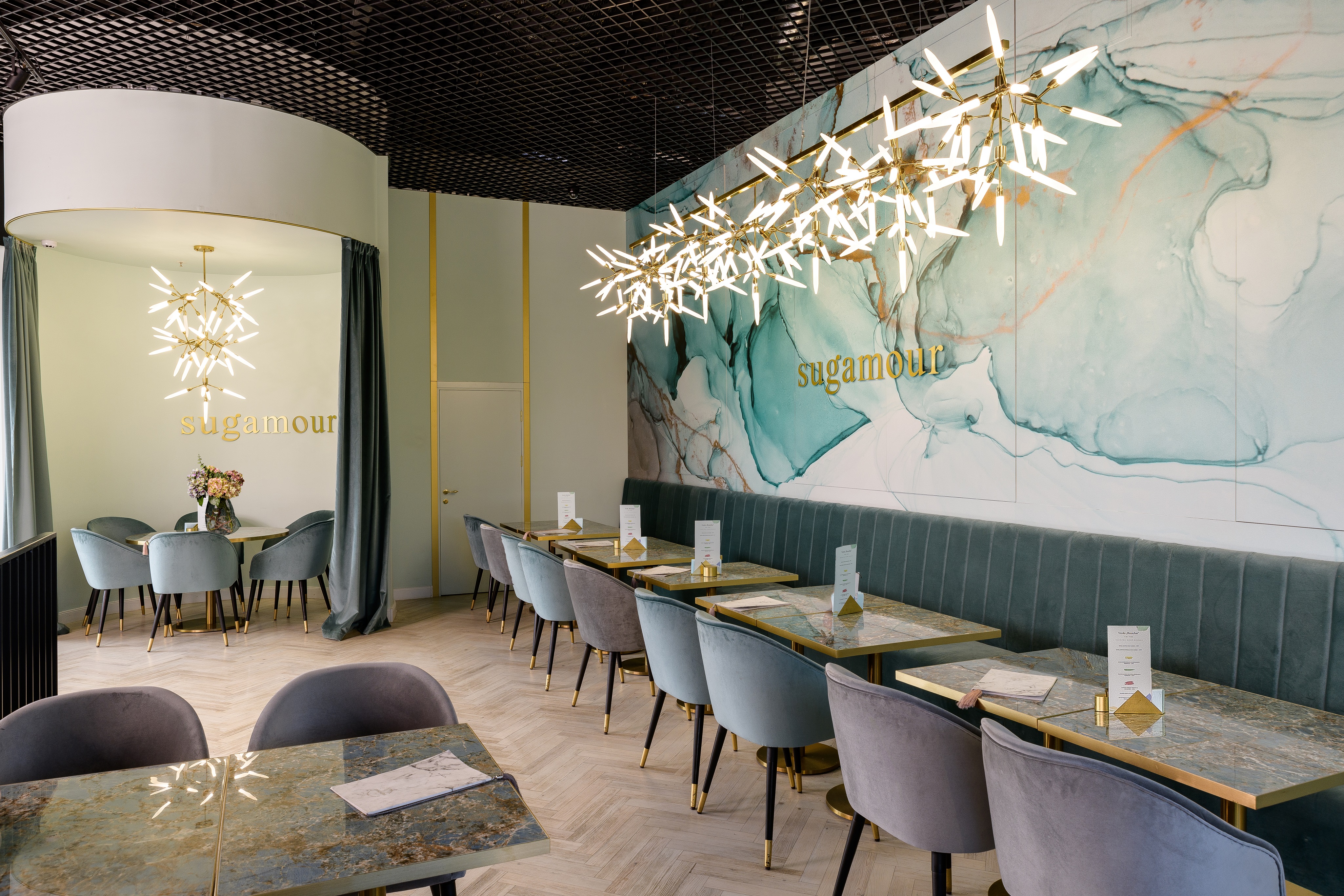 Binnen de categorie hospitality wisten wederom twee ontwerpers de jury te bekoren. Miranda Biretiene van Mywall werkte in een winkelcentrum in het Litouwse Kaunas nauw samen met ontwerper Jekaterina Kazmazovskaja voor het interieur van dessertshop Sugamour. De muren en plafonds van het zaakje werden bedekt met het geprinte behangpapier Coala WallDesign Fine Sand NW van Antalis en Avery MPI 3020 White Matt vinyl op gelaagde panelen. Het ‘waterverfeffect’ dat daardoor ontstond in combinatie met de luxueuze luchters en gouden accenten, maakten van Sugamour een aantrekkelijke en gesofisticeerde eetgelegenheid.