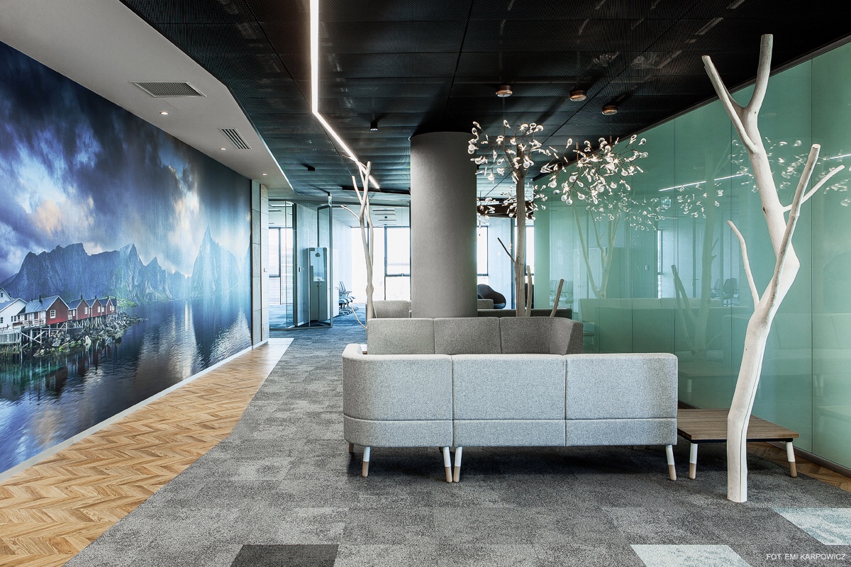Twee creatievelingen wisten de jury te overtuigen in de categorie office. Jacek Zacharias van Zachart Studio verzorgde de inrichting van drie kantoorruimtes in Alchemia in Gdańsk, het grootste kantorenpark van metropool Tri-City in Polen. Elke kantoor heeft een uniek design dat zich probeert te vereenzelvigen met de herkomst van klanten, een land of landschap en het personeel op die manier een goed gevoel wil geven op hun werk. De keuze voor het geprinte behangpapier Coala WallDesign NW Canvas van Antalis – met de textuur van een schilderdoek – zorgt bovendien voor een gezellige sfeer.