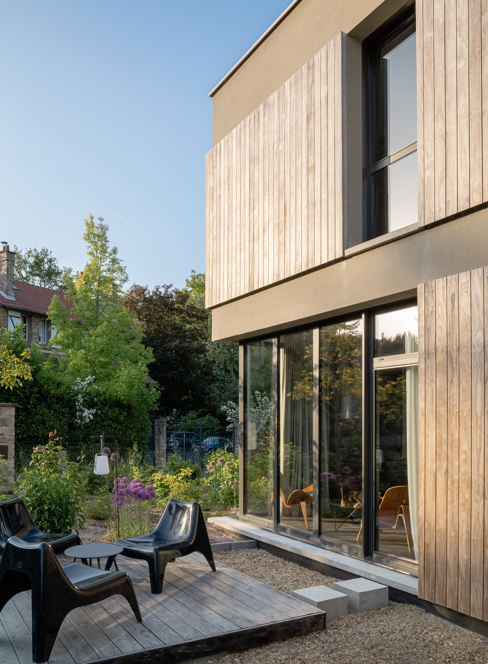 Het huis van twee architecten in Bois-le-Roi, in het hart van het bos van Fontainebleau bij Parijs, werd volledig bekleed met duurzaam gewonnen Kebony hout. Het vorige pand – dat volledig met stucwerk was uitgevoerd – werd heruitgevonden dankzij het gebruik van Kebony Clear hout. Het resultaat is een opvallende eigentijdse stijl en een passende aanvulling op de overwegend stenen architectuur van de plaatselijke omgeving.