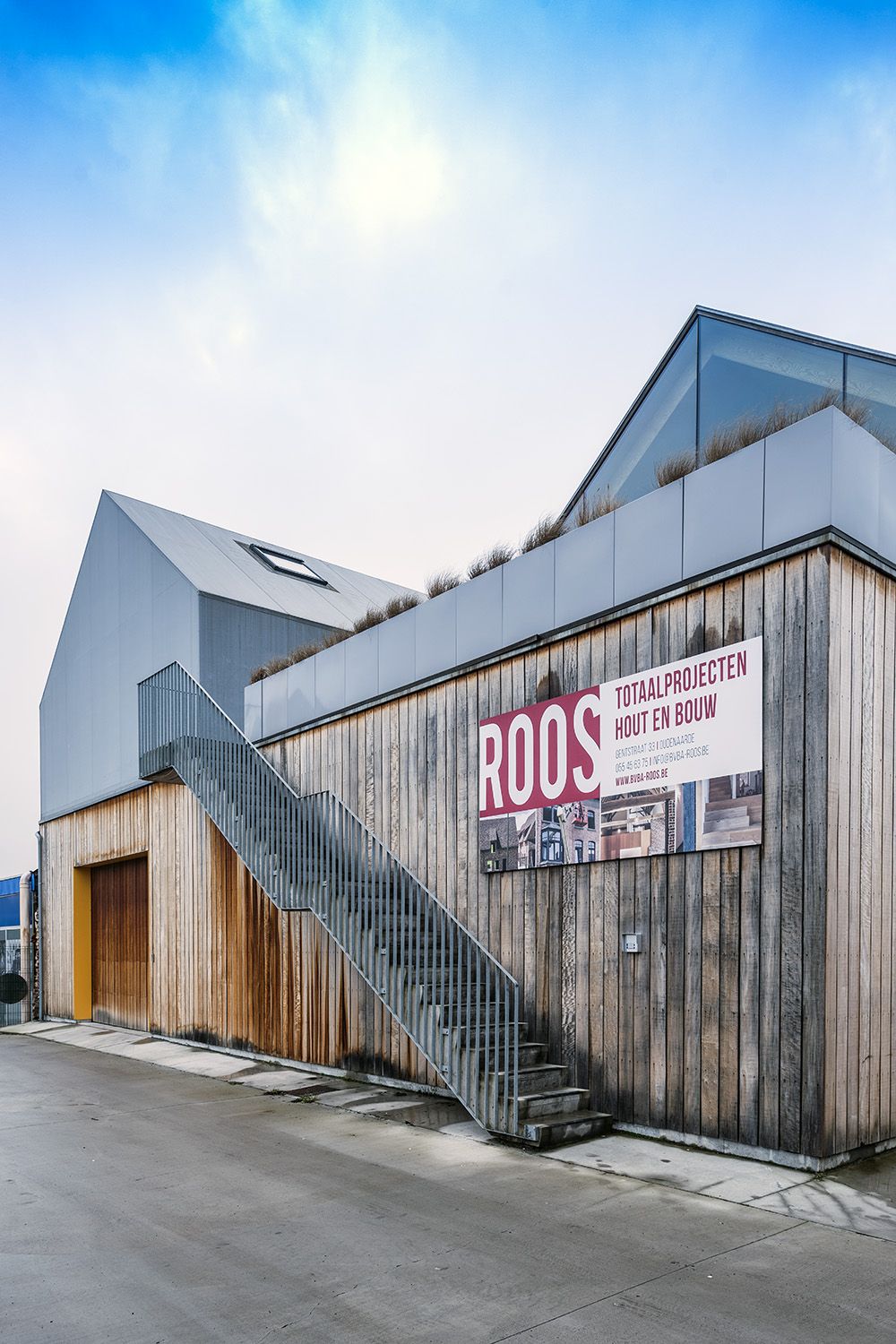 Toen Jeroen Roos en Nadja De Moor, eigenaars van totaalprojecten Hout en Bouw Roos, op zoek gingen naar een locatie voor een nieuwe schrijnwerkersloods, wisten ze niet dat hun noden en wensen zouden resulteren in een voorbeeldproject wat betreft ruimtelijk rendement. Daarenboven etaleert het project het kunnen van het bouwbedrijf. “Onze ambachtelijke schrijnwerkerij zag het levenslicht in 1918”, steekt Jeroen Roos van wal. “Sinds 2012 nemen we ook algemene aannemingswerken voor onze rekening waardoor we ons vandaag graag als algemeen hout- en bouwbedrijf bestempelen. Een groeitraject dat ons in 2011 noopte tot een zoektocht naar extra opslagruimte. Als Oudenaards bedrijf belandden we al vlug in de ambachtelijke zone aan de Neringstraat waar een vervallen pand te koop stond. Na aankoop kwamen we snel tot twee opties: grondig renoveren of nieuwbouw. De keuze viel uiteindelijk op afbraak en een nieuwbouwloods.”