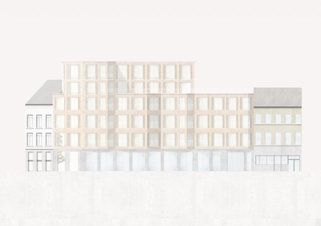 “De belangrijkste uitdaging bestond erin om een project te maken waarin de woonvormen en typologieën kwalitatief ingepast werden en tevens een relatie te zoeken met de straat en het plein. Het ontwerp ontstond vanuit de intentie om het bouwblok te versterken zonder pretentie”, klinkt het bij WV Architecten.
