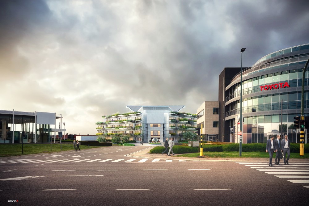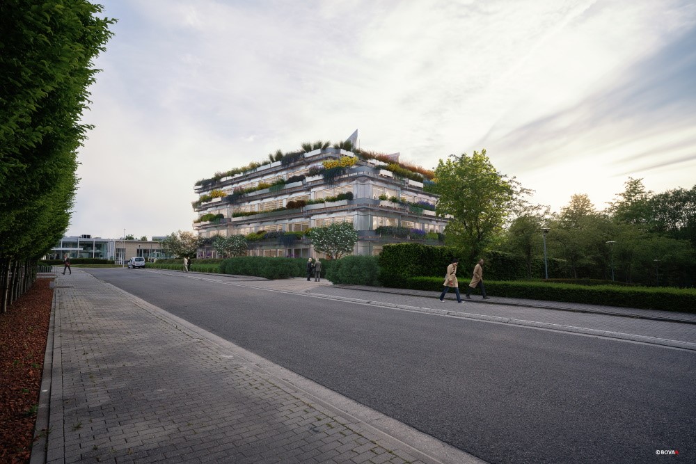 Naast duurzame doelstellingen op het gebied van energie en CO2-uitstoot, kenmerkt het ontwerp van BOVAArchitects, bouwtechnisch ondersteund door Bureau Bouwtechniek, zich vanuit het Green Deal-programma dus door een sterke klemtoon op circulaire productieprocessen en circulair omgaan met materialen en bouwsystemen. Na analyse werden de afbraakwerken selectief geconcipieerd met het oog op hergebruik. Behalve grond, worden nog heel wat materialen hergebruikt in het project, onder meer beplantingen, buitenverlichting, verhoogde vloeren, terrastegels, sprinklers, elektrische borden, het toegangscontrolesysteem, liften, trappen, sanitaire installaties, binnendeuren, natuursteenvloeren en -dorpels en keramische wandbekleding.