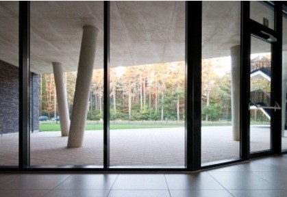 Het is geen eenvoudige opdracht om een synergie tussen mens en natuur tot stand te brengen aan de hand van een flink uit de kluiten gewassen gebouw , maar AR-TE lijkt er in dit geval bijzonder goed in geslaagd te zijn. Zowel aan de binnen- als aan de buitenkant verwijst alles naar de unieke natuurlijke omgeving, en dit zonder dat de bewoners moeten inboeten aan privacy en geborgenheid. “De nabijheid van het bos bracht ons ertoe om een transparant gebouw te ontwerpen waarin de binnenruimte aansluit op de natuurlijke omgeving,” vertelt Marc Vermeulen (AR-TE). “Zo slagen we erin om het bos een stukje naar binnen te brengen. Het groen fungeert als een levend schilderij: de bewoners hebben een prachtig zicht op de veranderende jaargetijden.” Dat uitzicht hebben ze zowel van binnenuit (door de vele glaspartijen) als vanop één van de vele de terrassen die aansluiten op de leefruimtes en zo binnen- en buitenomgeving met elkaar doen versmelten.
