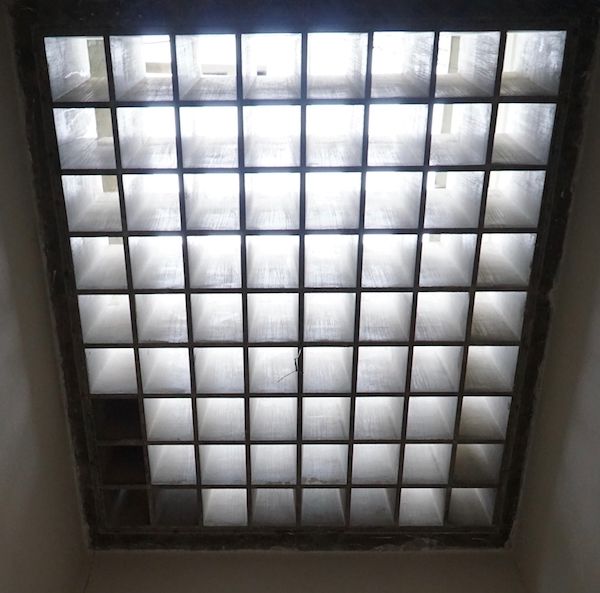 Door een muuropening in het publieke gedeelte van de bovenverdieping krijgen de bezoekers een bijzonder zicht op de meest indrukwekkende gang van het gebouw. “Dit is de 11 meter hoge gang die gelegen is achter de voorgevel. Nadat de bezoekers beneden aan de balie hun kaartje hebben gekocht komen ze als eerste door deze sprookjesachtige gang die nog verlicht zal worden met ledstrips en spots,” onthult onze gids.