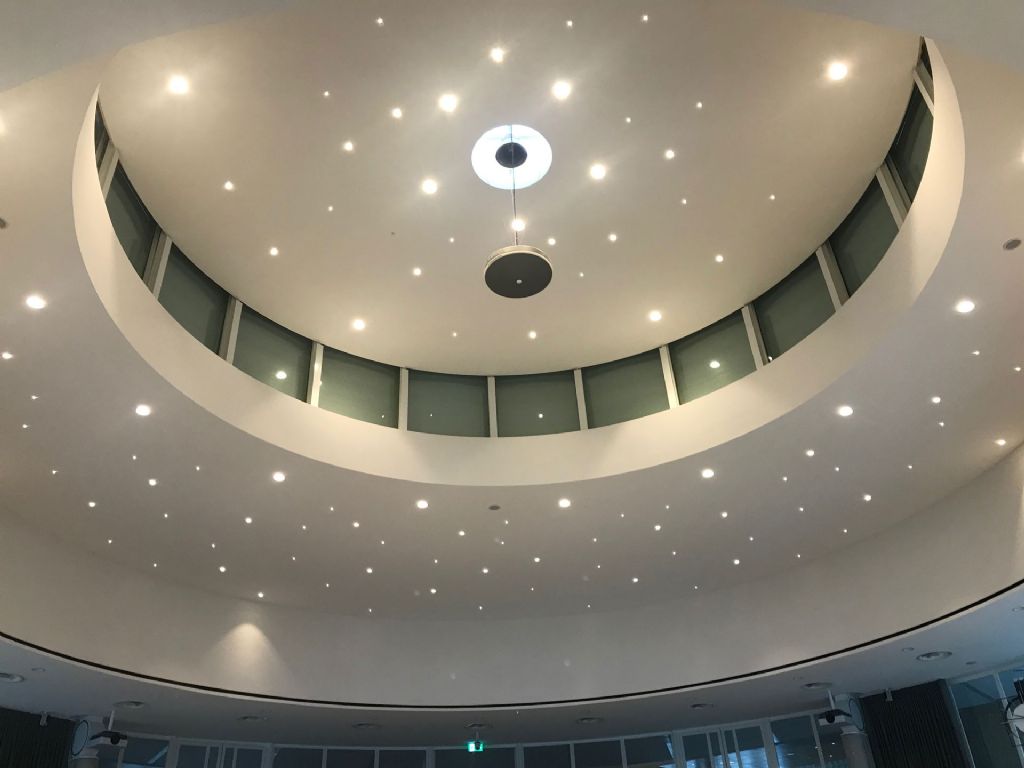 Het naadloos akoestische OWAplan had daarin een belangrijke bijdrage: de benodigde installatietechniek is naadloos geïntegreerd in het plafond en dankzij de hoge absorptiewaarde is de zaal voorzien van een prettige akoestiek.
