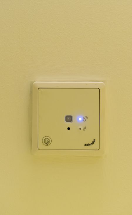 De 'hygro-presence'-sensor van Zehnder reageert op vocht, aanwezigheid, of allebei.