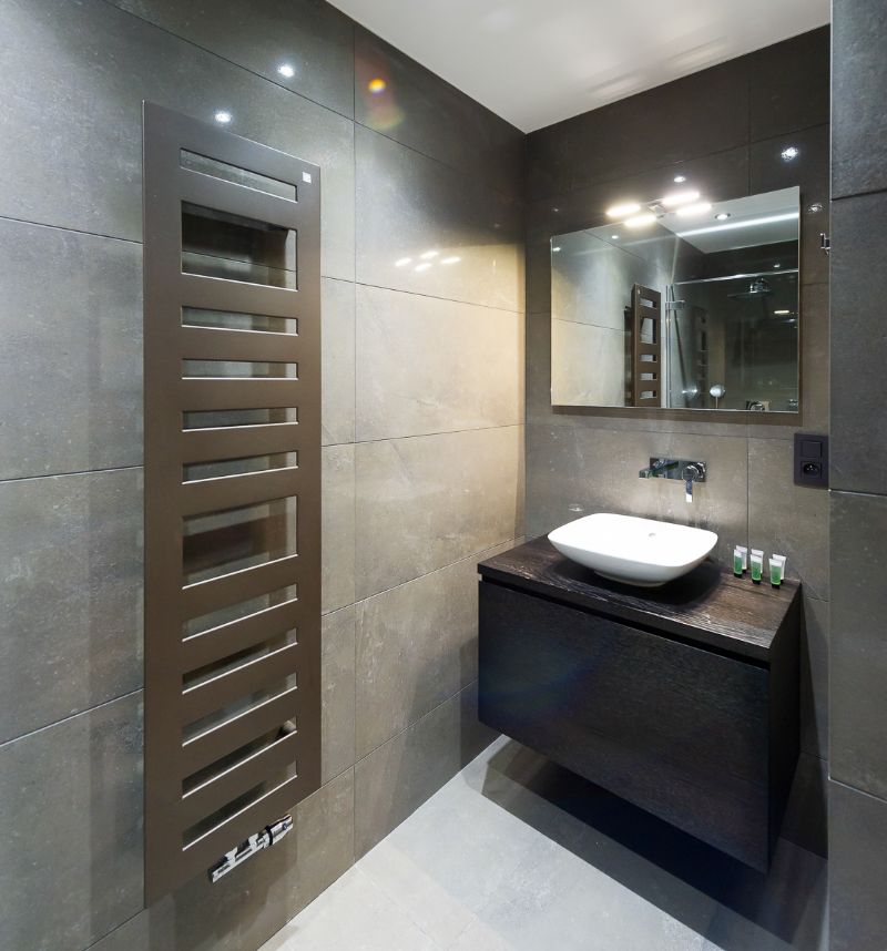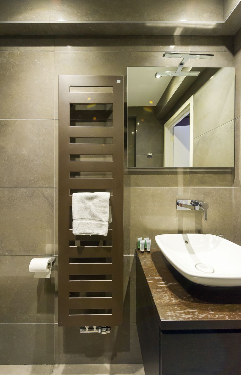 Zehnder heeft een zeer ruim kleurenpalet voor designradiatoren, met natuurlijke, architecturale en Tonic kleuren. Katarzyna Sobolewska opteerde voor de Zehnder Metropolitan designradiator in Brown Quartz, een neutrale kleur die perfect aansluit bij de prachtige badkamertegels. Christophe Thimmesch, Account Manager Heating Zehnder Group Belgium: “De licht korrelige structuur maakt deze uitvoering heel onderhoudsvriendelijk. Naast de standaard witte uitvoering behoort deze kleurschakering wellicht tot de top vijf speciale texturen die voor badkamers in hotels worden gekozen.”