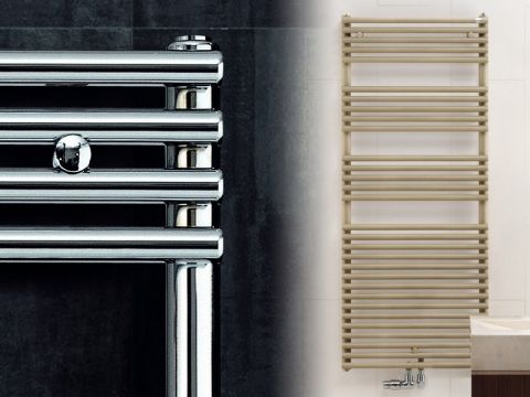 Het gerenommeerde architectuur- en designbureau King & Miranda ontwierp de Zehnder Vitalo, de nieuwste badkamerradiator. Het opvallend gestroomlijnd ontwerp bestaat in twee uitvoeringen: het ‘bar’-model en het ‘spa’-model. Beide modellen geven een uniek designaccent in elke moderne badkamer. De Zehnder Vitalo Bar is voorzien van een of twee chroom handdoekhouders met aan de linkerzijde een opening om handdoeken eenvoudig en comfortabel op te hangen. De Zehnder Vitalo Spa heeft hiervoor een of twee uitsparingen.