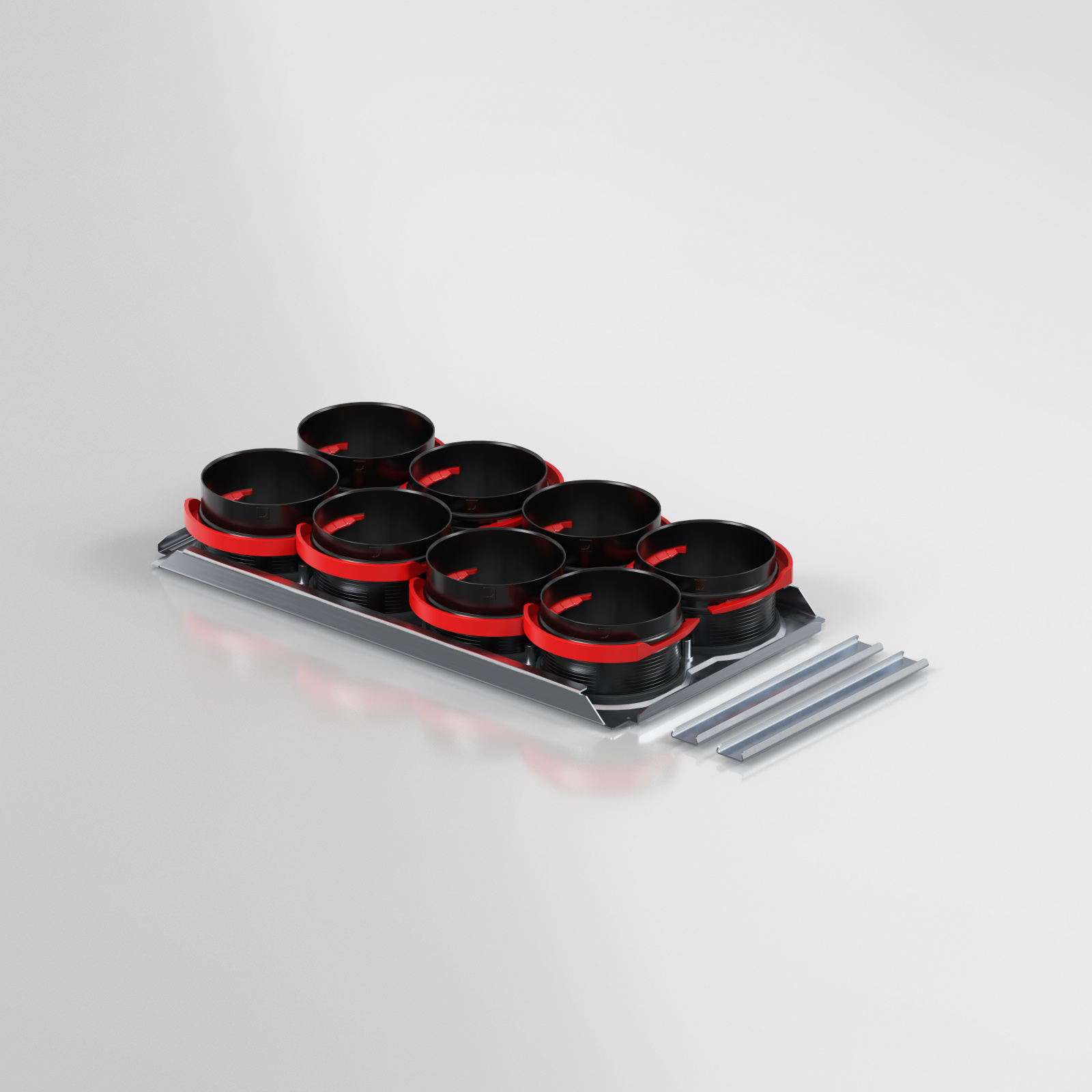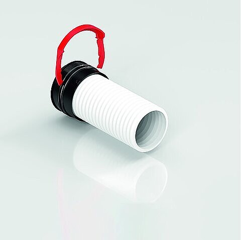 De RapidLock® bestaat uit drie elementen: een nieuwe kunststofaansluiting, een rode kunststof klembeugel en een rubberen ring met coating. Met de rode kunststof klembeugel koppel je alle onderdelen van het complete systeem snel en gemakkelijk aan elkaar. Tal van tussenstappen worden overbodig, waardoor de efficiëntie van het installatieproces wordt verhoogd.