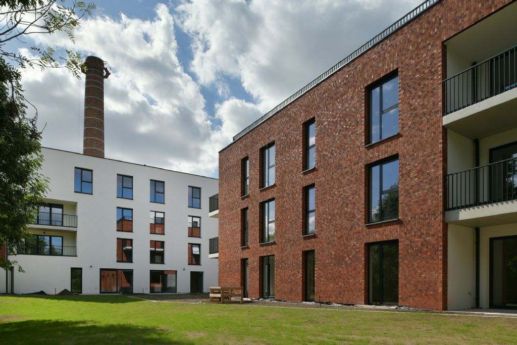 De architecturaal merkwaardige elementen uit het industriële complex doen dienst als waardevolle getuigen van het verleden. Het poortgebouw en de aanpalende fabriekshal worden heringericht tot woongebouwen met lofts en meergezinswoningen. Opvallend is dat de gerenoveerde delen van de oude fabriek steeds vanuit alle hoeken prominent aanwezig zijn. De schoorsteen wordt als landmark behouden en maakt de site vanop een afstand herkenbaar. De architectuur van de nieuwe gebouwen is eigentijds, kwalitatief en tijdloos. Ze sluiten enerzijds nauw aan bij de bestaande en onderscheiden zich anderzijds door hun strakke vormgeving.