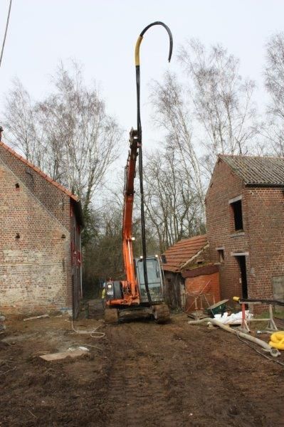 De uitvoering van de werken is gestart half maart. Qua fundering opteerde het bureau voor de techniek Very High Pressure. De palen zijn uitgevoerd tot een diepte van 6,8 meter en 12 palen zijn voorzien van telkens 2 lussen Socarex-buizen om bodemwarmte te onttrekken als voeding voor de warmtepomp.