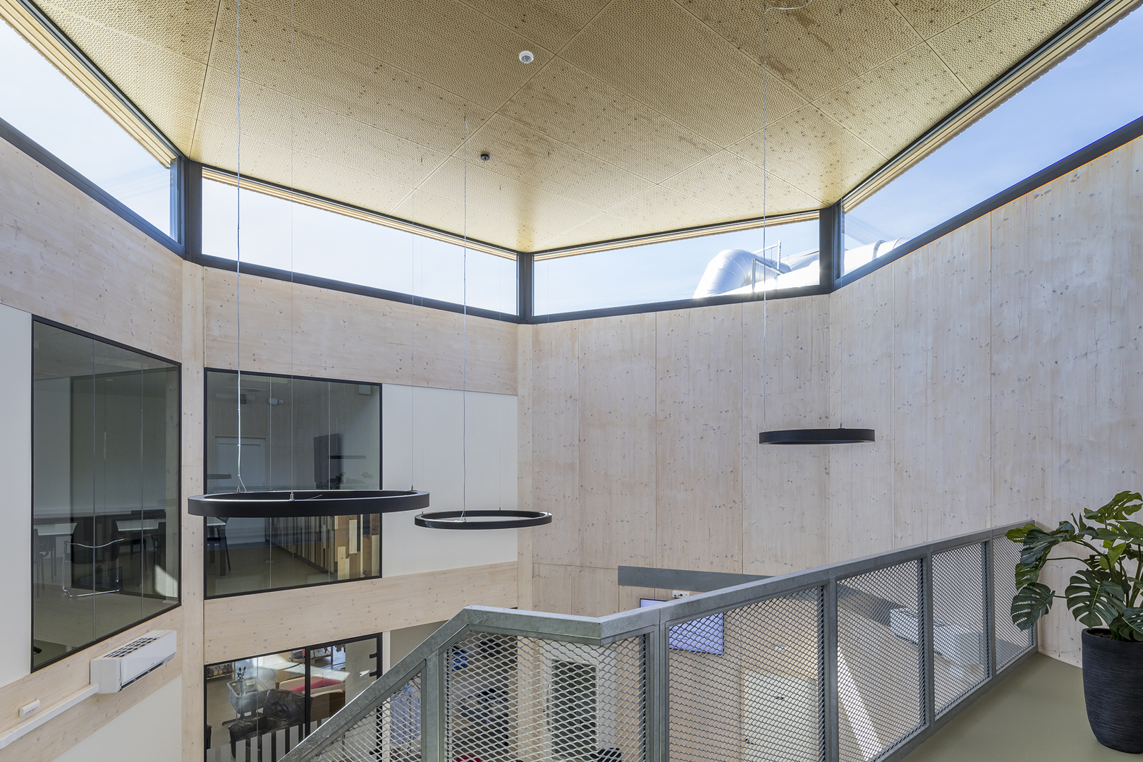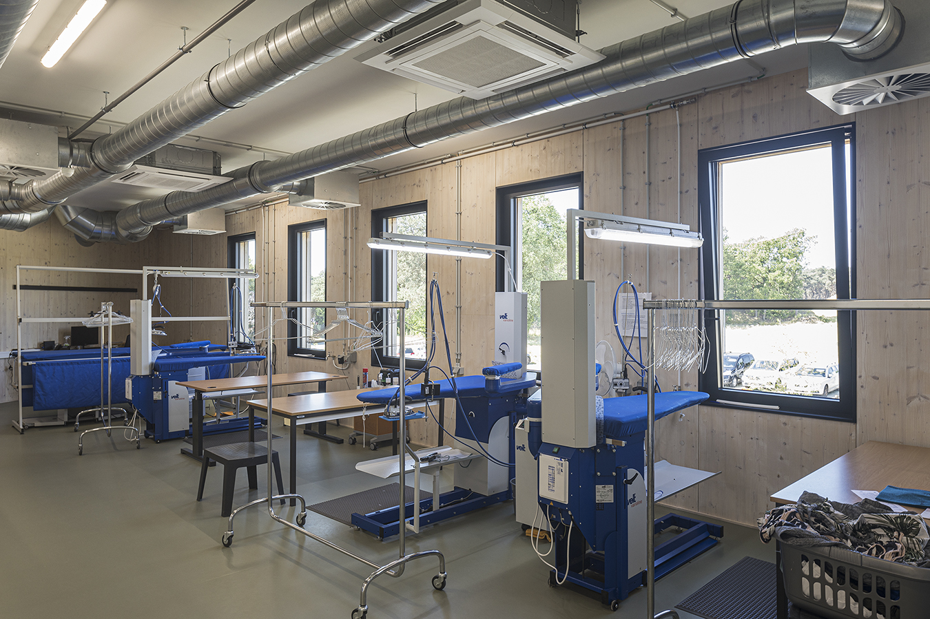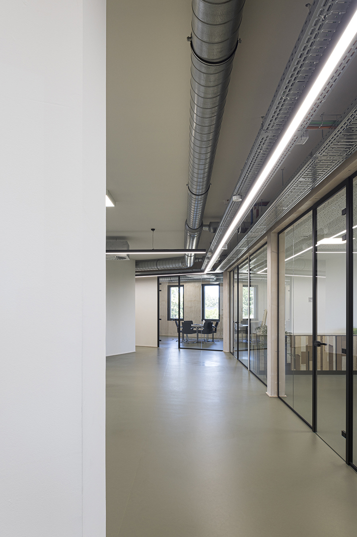 Circulair bouwen gold ook als aandachtpunt bij het ontwerp van de technieken. Die werden meteen geïntegreerd in de ontwerpfase. In nauwe samenwerking met aannemer Beneens en studiebureau Raco – dat ook instond voor het EPB-advies en de EPB-verslaggeving – tekende DAM architecten de technieken uit in BIM. Er werd niets ingestort, waardoor alle buizen en leidingen zichtbaar bleven en makkelijk bereikbaar zijn voor bijvoorbeeld een herstelling.