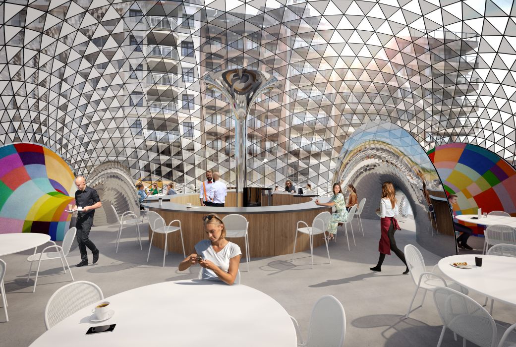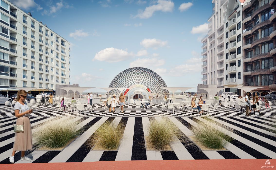 "Het ontwerp wekt een gevoel van oneindigheid en vrijheid op, dat nog eens wordt versterkt door de waterspiegel rondom het paviljoen waardoor de halve bol een volledige bol lijkt. Het opzet is om het Albertplein te doen heropleven, om mensen te lokken om te komen kijken, om te worden bekeken en om weg te dromen met de zon op de huid en de blik op de zee"