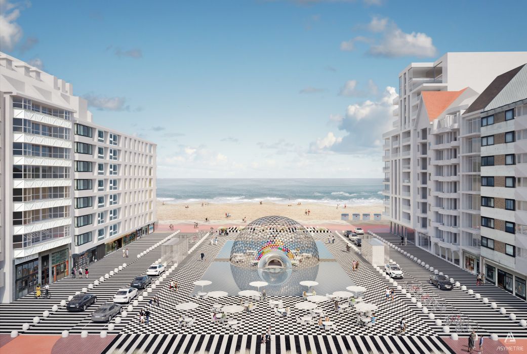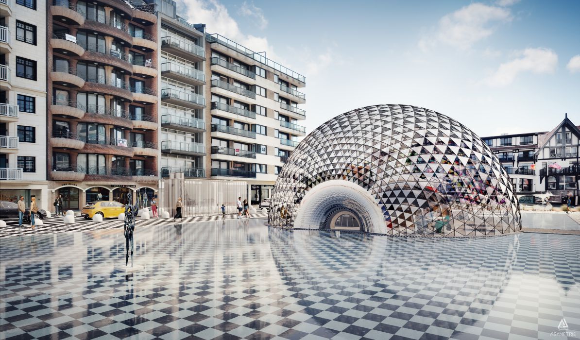 Door het verdwijnen van de omliggende horeca heeft het Albertplein in Knokke-Heist – in de volksmond beter bekend als “Place m’as-tu vu” – de afgelopen jaren veel aan uitstraling en aantrekkingskracht ingeboet. Het gemeentebestuur nam daarom architectenbureau Philippe Samyn and Partners onder de arm om het plein een tweede leven te geven. Nadat eerst een 2-laagse ondergrondse parking werd gebouwd en alle nutsvoorzieningen werden vernieuwd, is het bouwteam sinds enkele weken ook bovengronds aan de slag. Absolute blikvanger wordt een glazen paviljoen, opgebouwd uit 2211 driehoekige glasraampjes, met binnenin ruimte voor horeca.