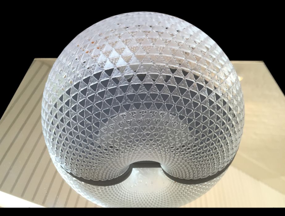 Het centrale koepelvormige paviljoen is een ode aan het licht. Net zoals stilte en muziek tegelijkertijd contrasteren maar elkaar ook nodig hebben, zo horen ook reflectie en transparantie, en licht en donker bij elkaar. De koepel is gemaakt van twee soorten extra helder kristalglas. De ene helft van de glasdriehoeken bestaat uit gewoon spiegelend glas, terwijl de andere helft volledig is ontspiegeld. Dat wekt een gevoel van oneindigheid en vrijheid op, dat nog eens wordt versterkt door de waterspiegel rondom het paviljoen waardoor de halve bol een volledige bol lijkt.