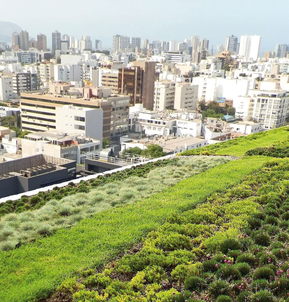 Verschillende types groendaken kunnen echter een oplossing bieden op voorwaarde dat er voldoende water voor verdamping beschikbaar is. Het Zinco Urban Climate Roof komt tegemoet aan deze problematiek. Niet enkel worden overstromingen door wateroverlast vermeden met behulp van een vertraagde waterafvoer door de beplanting, het substraat en de drainage, ook wordt de omgevingstemperatuur verlaagt.