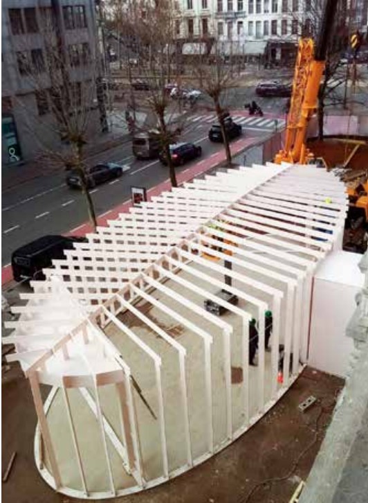 De firma Laeremans Geert nv uit Heist-op-den-Berg zorgde voor de montage van dit prachtige paviljoen. Het paviljoen is vervaardigd uit thermisch verzinkt staal, waarna het geheel nog een kleurtje kreeg door middel van duplex.