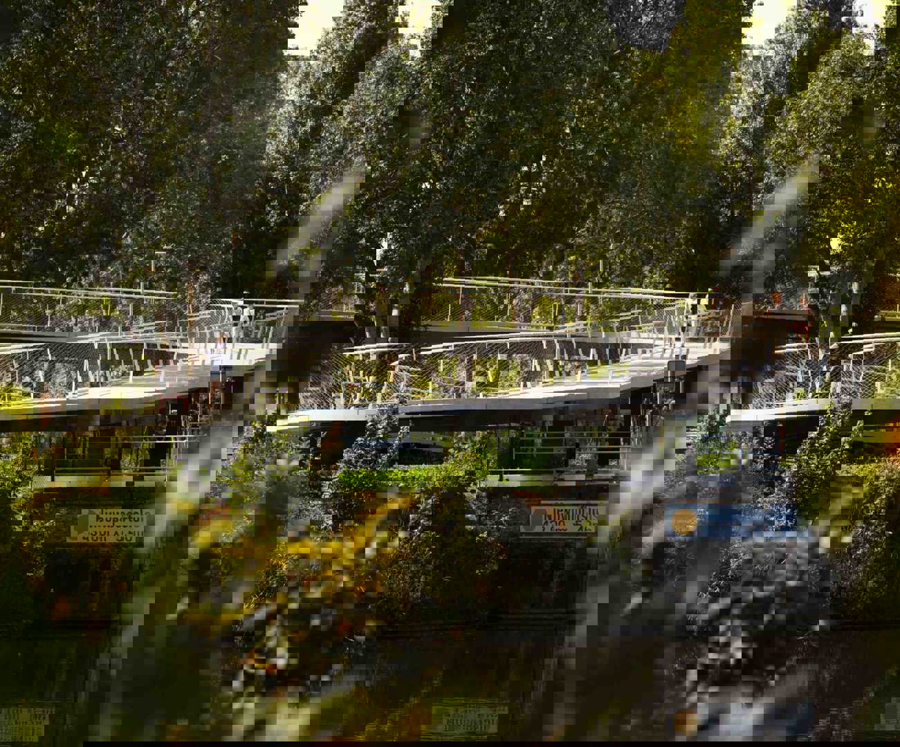 “De brug kruist het water en de Vaartstraat waardoor een verbinding ontstaat tussen het nieuwe Suikerpark en de oude stad,” vertelt Joris Veerman van ZJA. “Deze plek vraagt niet om een icoon, maar om een ingetogen ontwerp.” De fietsbrug vormt zich subtiel tussen de monumentale bomen langs de voormalige vestingwerken van Vauban. Slanke kolommen van 80 millimeter massief staal dragen het brugdek en geven de constructie een bijna zwevend karakter – een elegante lijn die zich voegt in het landschap in plaats van erop te domineren.