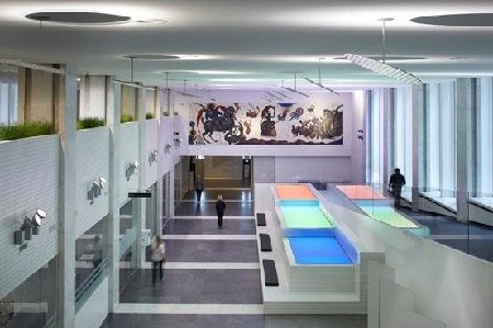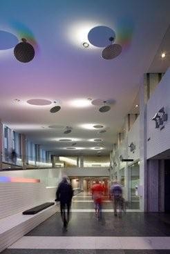 Over een oppervlakte van 25.000m² wilde Zumtobel met verschillende armaturen en sturingen een optimale en efficiënte lichtoplossing creëren. Van selecteerbare RGB-armaturen over duurzame ledlampen tot spiegelprojectiesystemen: elke ruimte kreeg een eigen lichtstemming.