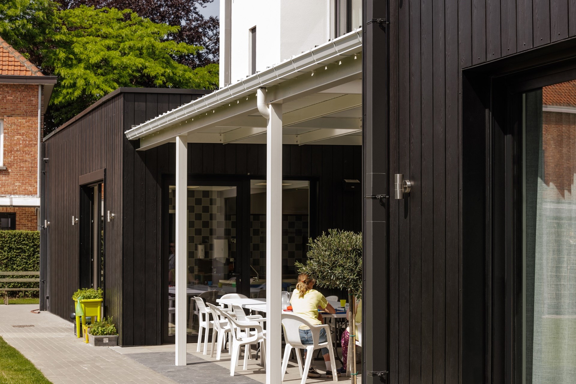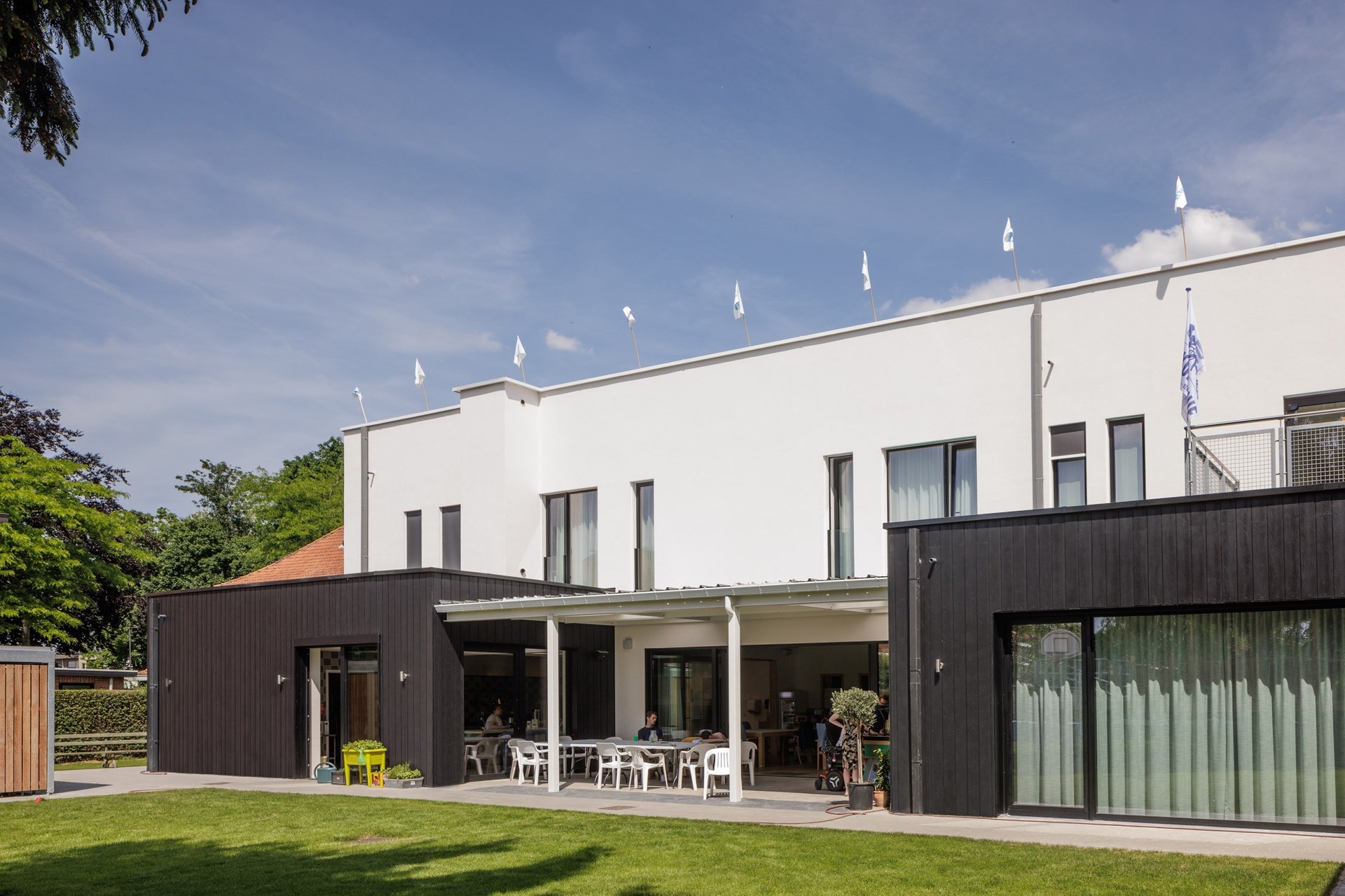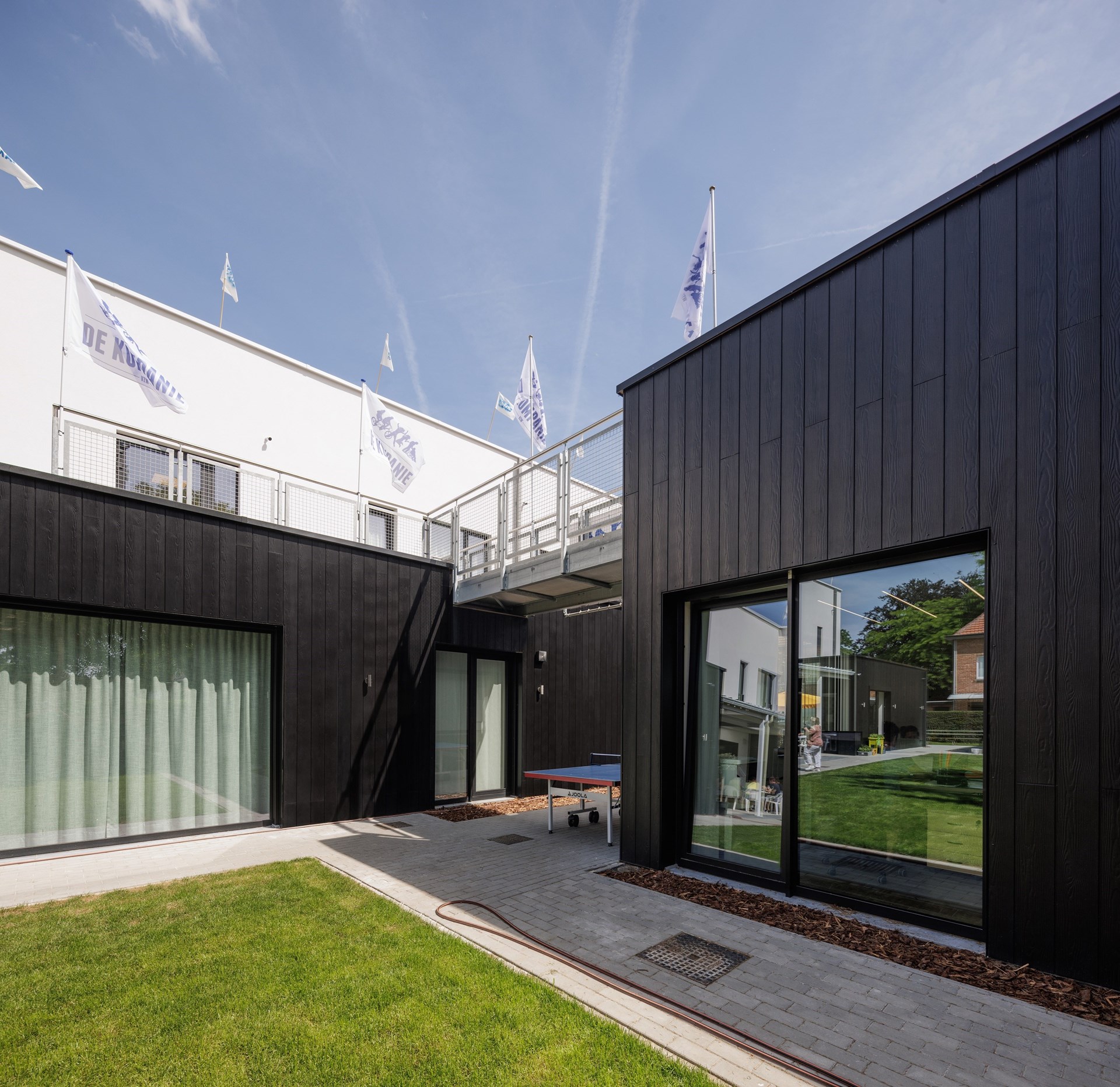 Toen vzw De Kompanie in 2013 startte als klein knutselatelier, kon niemand vermoeden dat er amper zeven jaar later in Mortsel een inclusief woonproject voor volwassenen met een beperking zou verrijzen. Het intrigerende contrast tussen de gevels in witte crepi en zwarte Cedral Click Wood sidings creëert een strakke, warme look die het geheel de allure geeft van een modern residentieel complex. Dat de sidings geen onderhoud vergen en een fikse kostenbesparing toelieten, was evenzeer van doorslaggevend belang.