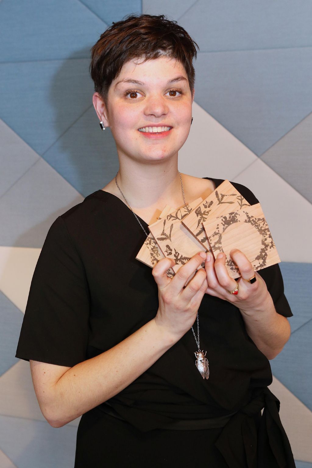 Via Creandi – het bezoekerscentrum van Leolux – was op donderdag 30 maart decor voor de finale van de eerste editie van de Crossborder Design Contest. Onder het toeziend ook van mede-studenten en designminnend Limburg mocht Anna Tuhus – 26 jaar, afkomstig uit Zweden en studerend aan Central Saint Martins in Londen - de eerste prijs in ontvangst nemen. Ze ontwierp kersenhouten vloertegels met gelaserde prints van droogbloemen en ingelegd met steenkoolgruis. Tuhus liet zich bij haar ontwerp inspireren door het rijke mijnverleden van Limburg.
