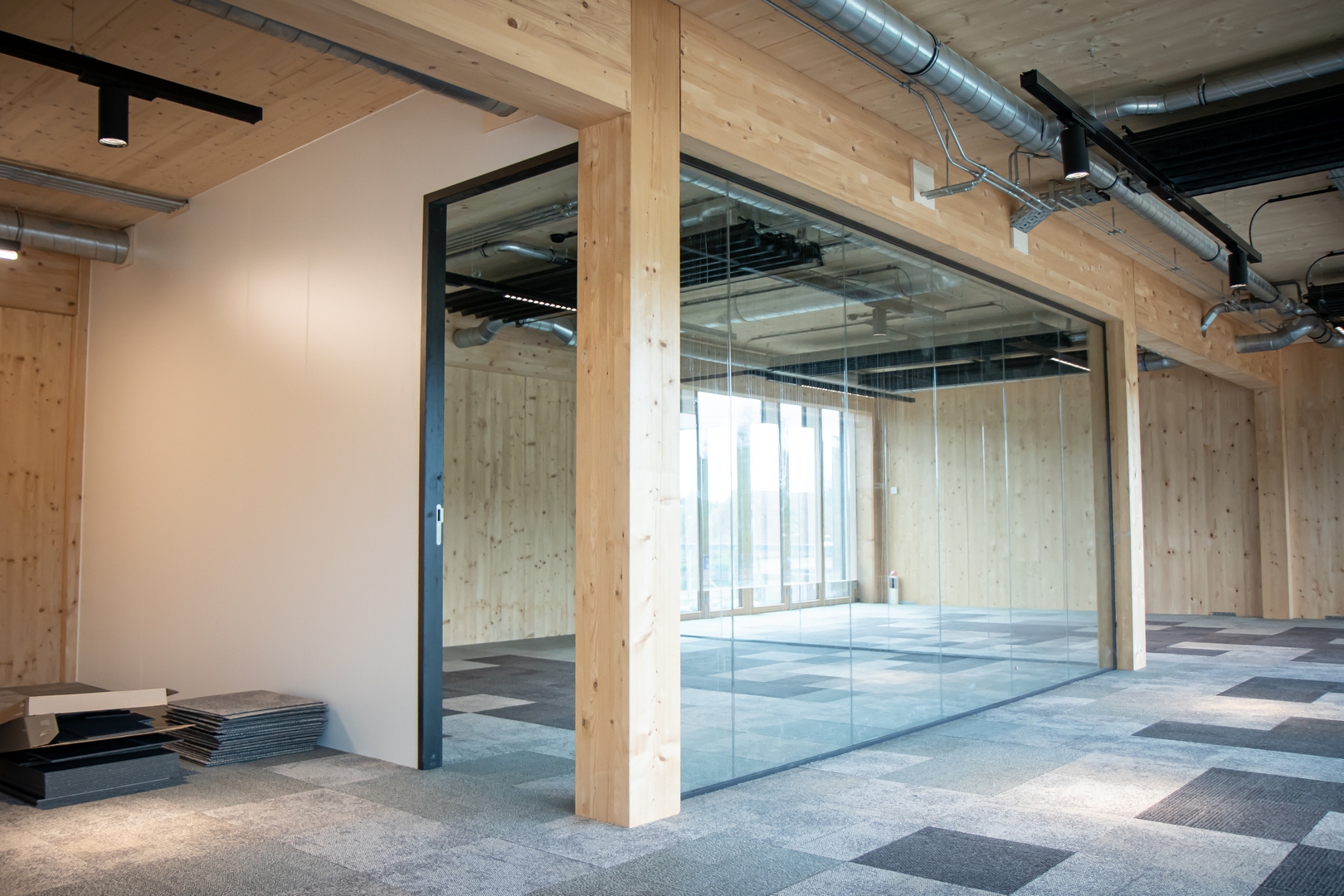 De demonteerbare scheidingswanden van enkelglas van JUUNOO zijn functioneel en passen in elke kantoorruimte. Zo creƫer je snel een extra werkplek of vergaderruimte.