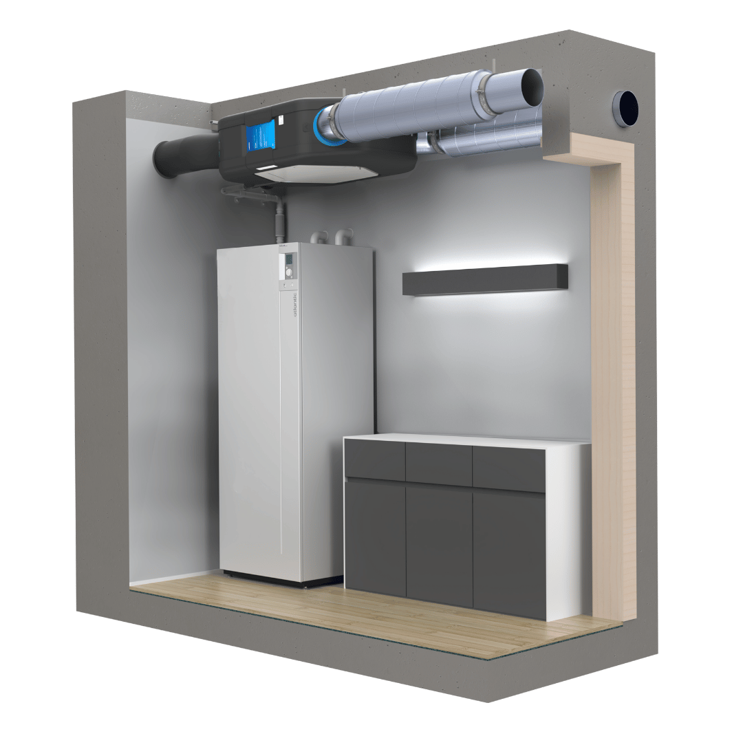 De HRC Opti-Air is een compact type D ventilatiesysteem. Dankzij het compacte formaat past de Opti-Air in de meest krappe ruimtes en weet het desondanks fantastische resultaten te behalen. Daarnaast kan het toestel zowel tegen het plafond, aan de wand of boven de vloer geïnstalleerd worden. 2 mogelijke versies: - Opti-Air 260 met een debiet van 260 m³/h bij 150 Pa en een thermisch rendement van 84% - opti-Air 360 met een debiet van 350 m³/h bij 150 Pa en een thermisch rendement van 81%