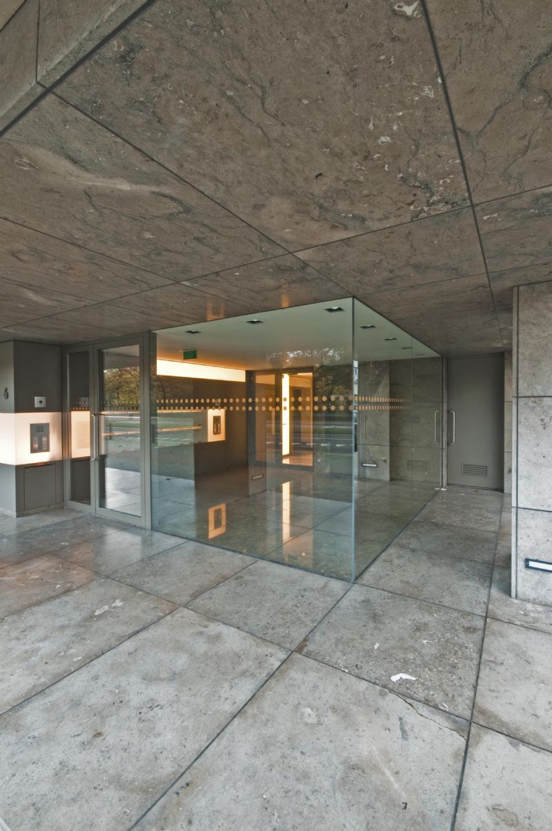 Een gelijmde structurele kamerbrede beglazing en glazen borstweringen aan de binnenzijde, zorgen voor een optimale transparantie en een adembenemend zicht op het stadspark.