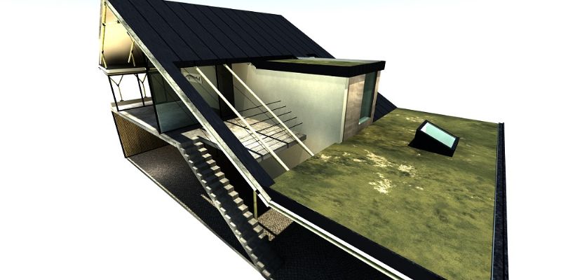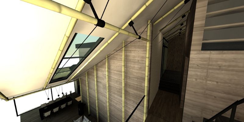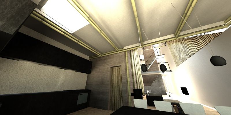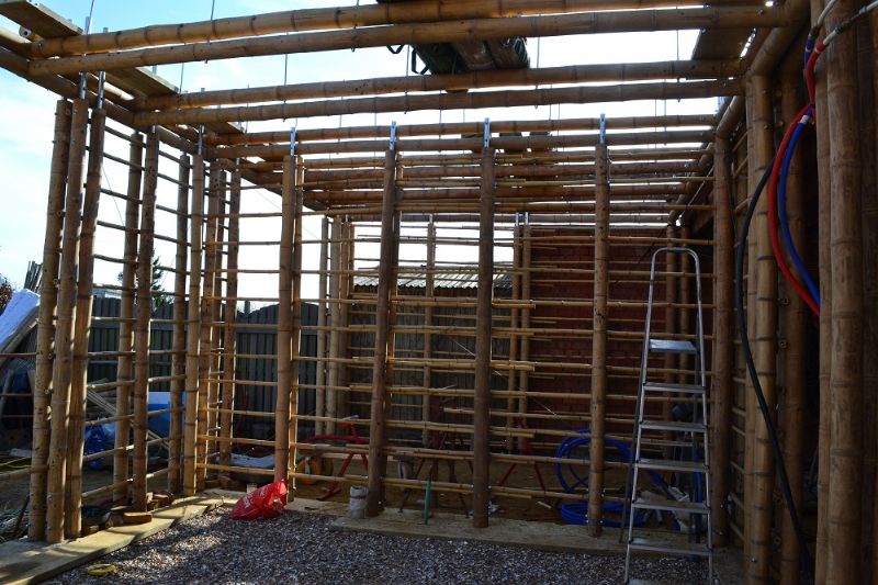 CRU! Architecten maakte het ontwerp voor een woning en een kantoor-atelier in bamboe waaraan momenteel volop gebouwd wordt. Het vernieuwende zit hem daarin dat bamboe bij dit project niet alleen als gevelbekleding maar ook als constructiemateriaal gebruikt wordt. Voor isolatie van zowel muren, dak als vloeren is het gehele skelet met kalk-hennep bedekt, wat een grote ecologische meerwaarde biedt aangezien het geheel meer CO2 opneemt dan uitstoot. De bouwwerken lopen nog tot februari 2016.