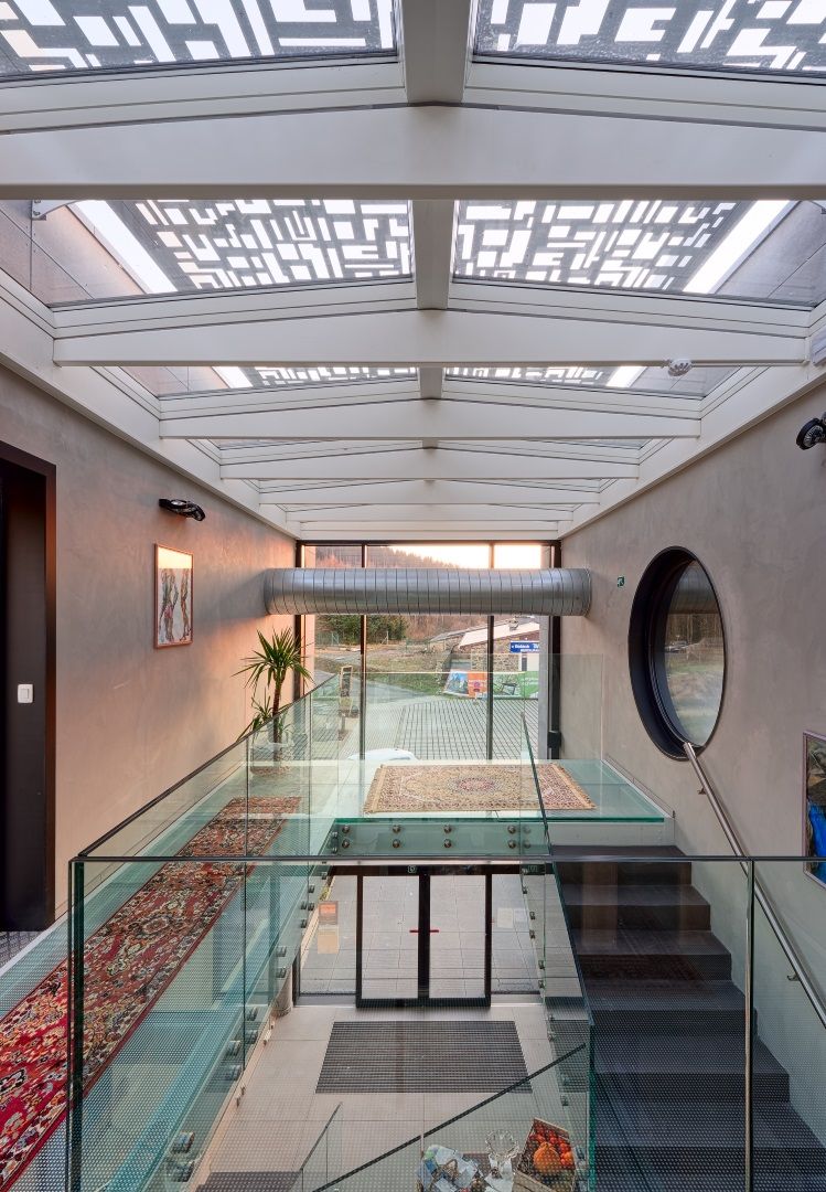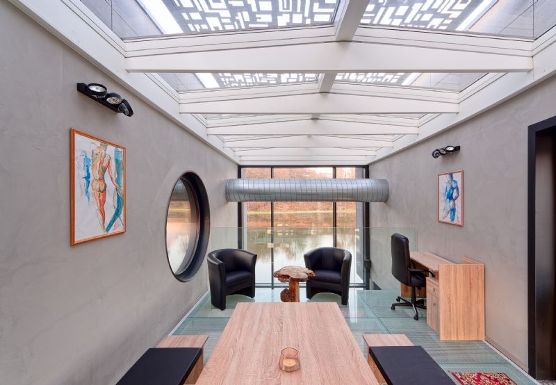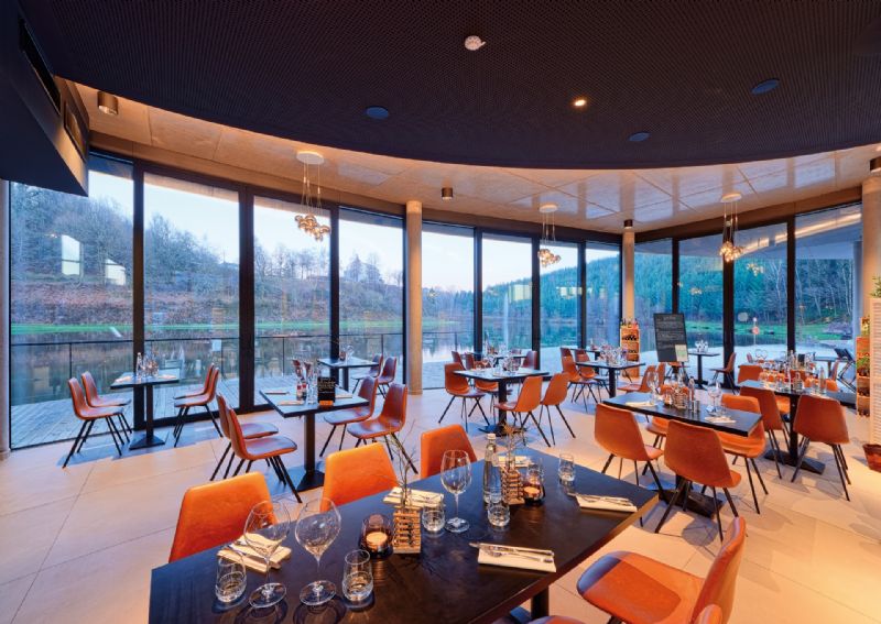 Een lichte en luchtige receptie die het exterieur en interieur van het gebouw met elkaar verbindt. De link tussen buiten en binnen was belangrijk en met oog voor detail tot stand gebracht. De beweging van het water buiten wordt weerspiegeld in de verdeling van het daglicht naar binnen. De receptie baadt in natuurlijk, speels licht door de hoog geplaatste luifel.