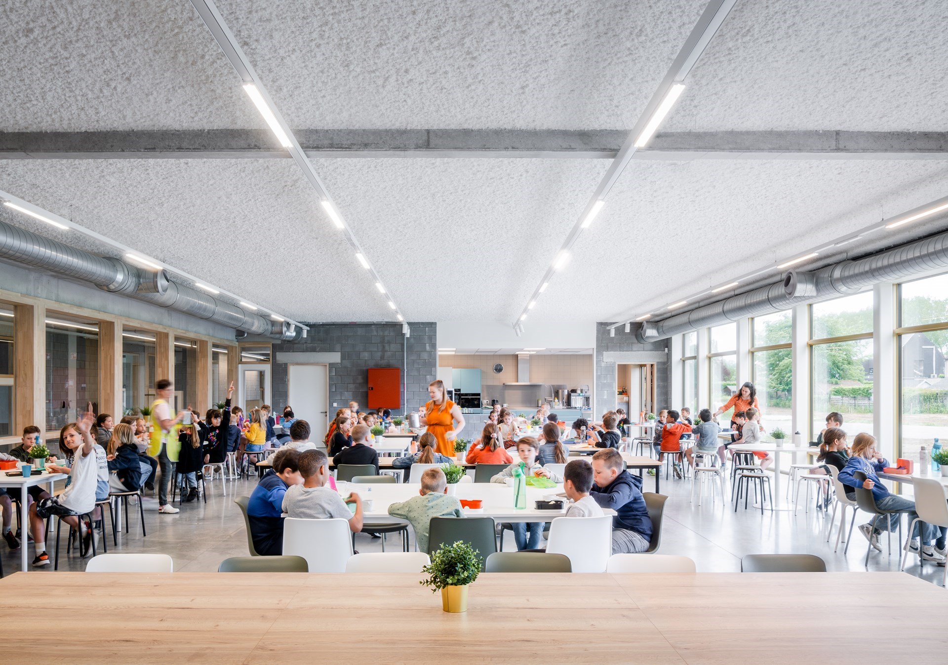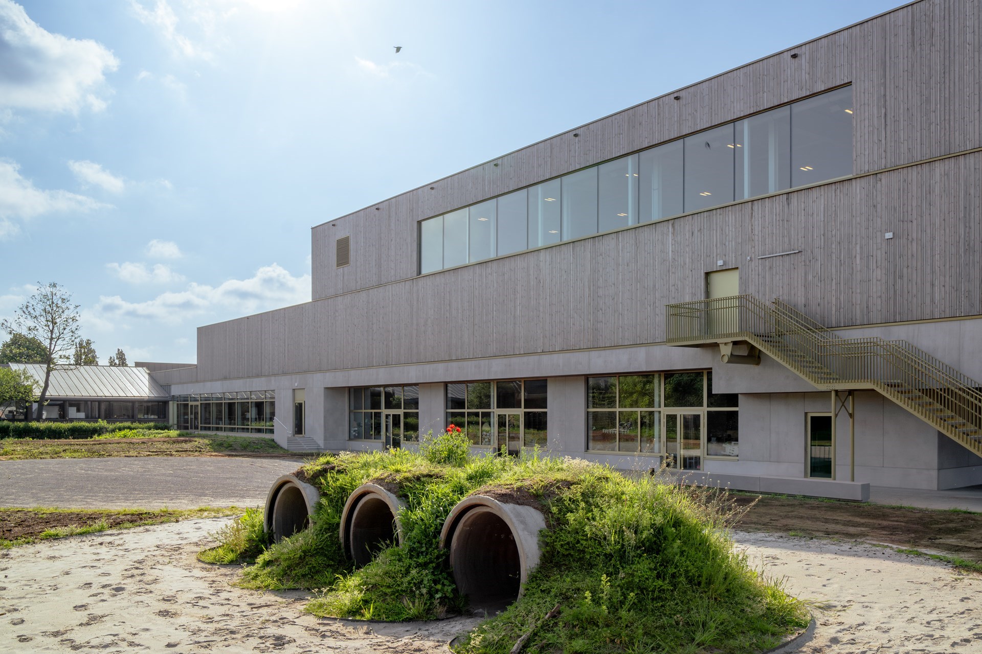De nieuwe vleugel krijgt zeven kleuterklassen, een ontvangstlokaal, een refter met een keuken, een speelgang, wc’s en een EHBO-lokaal. Het gebouw met de klassen bestaat uit een betonnen plint met houttextuur. Daarbovenop komen een turnzaal, een danszaal, kleedkamers met douches en enkele bergruimtes. De bovenverdieping zal vlot bereikbaar zijn via een trap en een lift. De lokale turnverenigingen zullen deze moderne infrastructuur kunnen gebruiken zowel tijdens als na de schooluren.