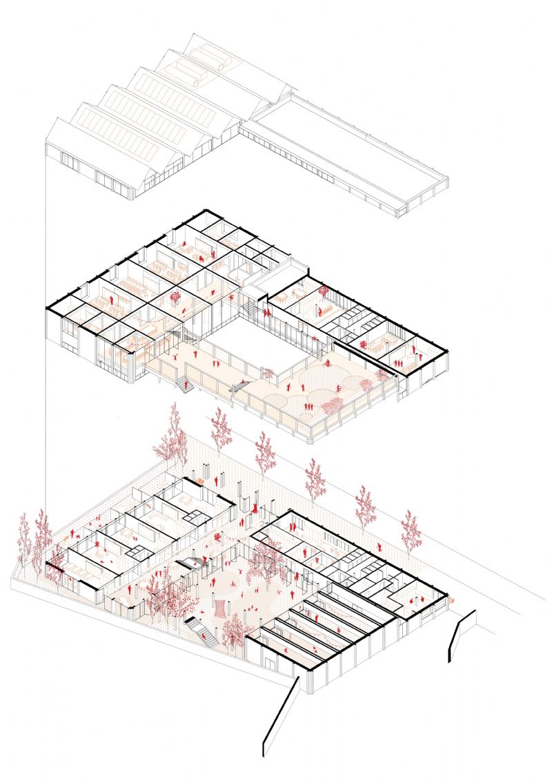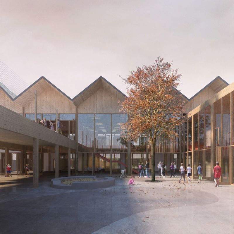 Vandaag trekt de jonge basisschool in een voormalig kantoorgebouw te midden van een industriële site in Haren. “In plaats van simpelweg klaslokalen toe te voegen, draait de renovatie en uitbreiding van de school om de creatie van een veilige thuishaven voor de kinderen”, klinkt het bij a2o architecten. De Schatkist is opgevat als een rustige oase te midden van een woestijn van asfalt. Het team ontwierp een gebouw dat inwaarts kijkt, als ware het een cocon. Tegelijkertijd toont het gebouw zich uitnodigend naar de buurt toe.