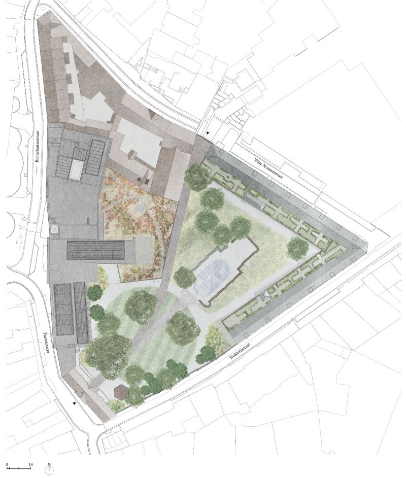 De plannen voor de restauratie van het Hasseltse Begijnhof liggen eindelijk op tafel. Onder het goedkeurend oog van Vlaams Bouwmeester Leo Van Broeck sloegen Provincie Limburg, Stad Hasselt en Universiteit Hasselt eind vorig jaar de handen in elkaar. Het consortium Bovenbouw Architectuur, David Kohn Architects, Architecten Beeck & Hermans en Landinzicht kwam via een ontwerpwedstrijd unaniem als winnaar uit de bus. Terwijl de provincie eigenaar blijft en Hasselt een vernieuwd uithangbord krijgt, geniet Universiteit Hasselt van 50 jaar gratis erfpacht. Niet toevallig zal de universiteit zijn faculteit Architectuur huisvesten in de gerestaureerde begijnenwoningen. Blikvangers van het ontwerp zijn een spiegelvijver aan de voet van de onaangetaste kerkruïne, een publieke tuin en een 26 meter hoge uitkijktoren.