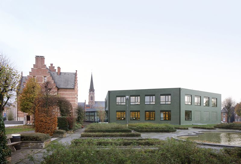 Het kasteel Vaulogé, sinds 1961 als gemeentehuis in gebruik, vormde een belangrijk aanknopingspunt voor het ontwerp van een nieuw bestuurs- en dienstencentrum. Weliswaar waren binnenin ingrijpende verbouwingswerken gebeurd en was de historische context, een kasteel in een park, deels verdwenen, toch is het gebouw nog beeldbepalend voor de gemeente.
