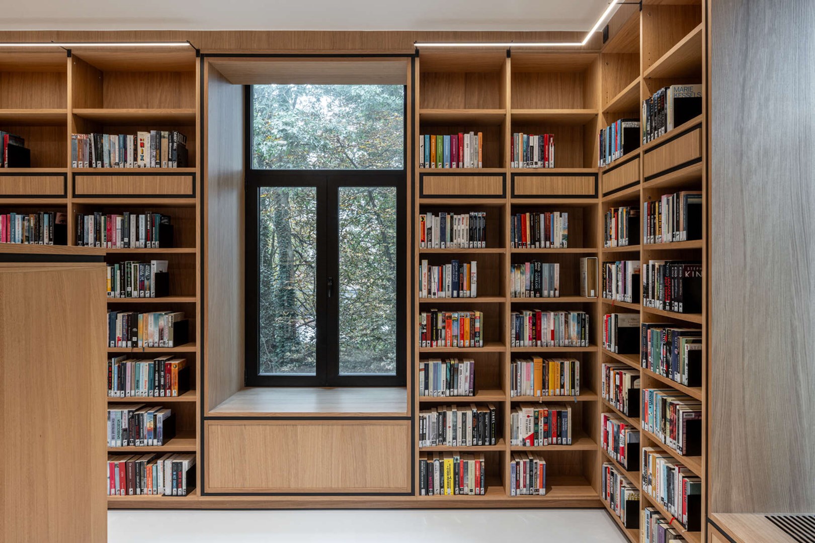 Na twee jaar renovatie opende de bibliotheek van Halle opnieuw de deuren op haar vertrouwde locatie in de Basiliekstraat. WE-S Architecten ontwierp een subtiele uitbreiding die de zichtbaarheid van het gebouw optimaliseert en tegelijkertijd de oorspronkelijke architecturale kwaliteiten versterkt. Het resultaat is een flexibele en duurzame ruimte die zich naadloos aanpast aan veranderende behoeften, met ingrepen zoals een auditoriumtrap, een vide en strategisch geplaatste raampartijen die het interieur verbinden met het achterliggende park.