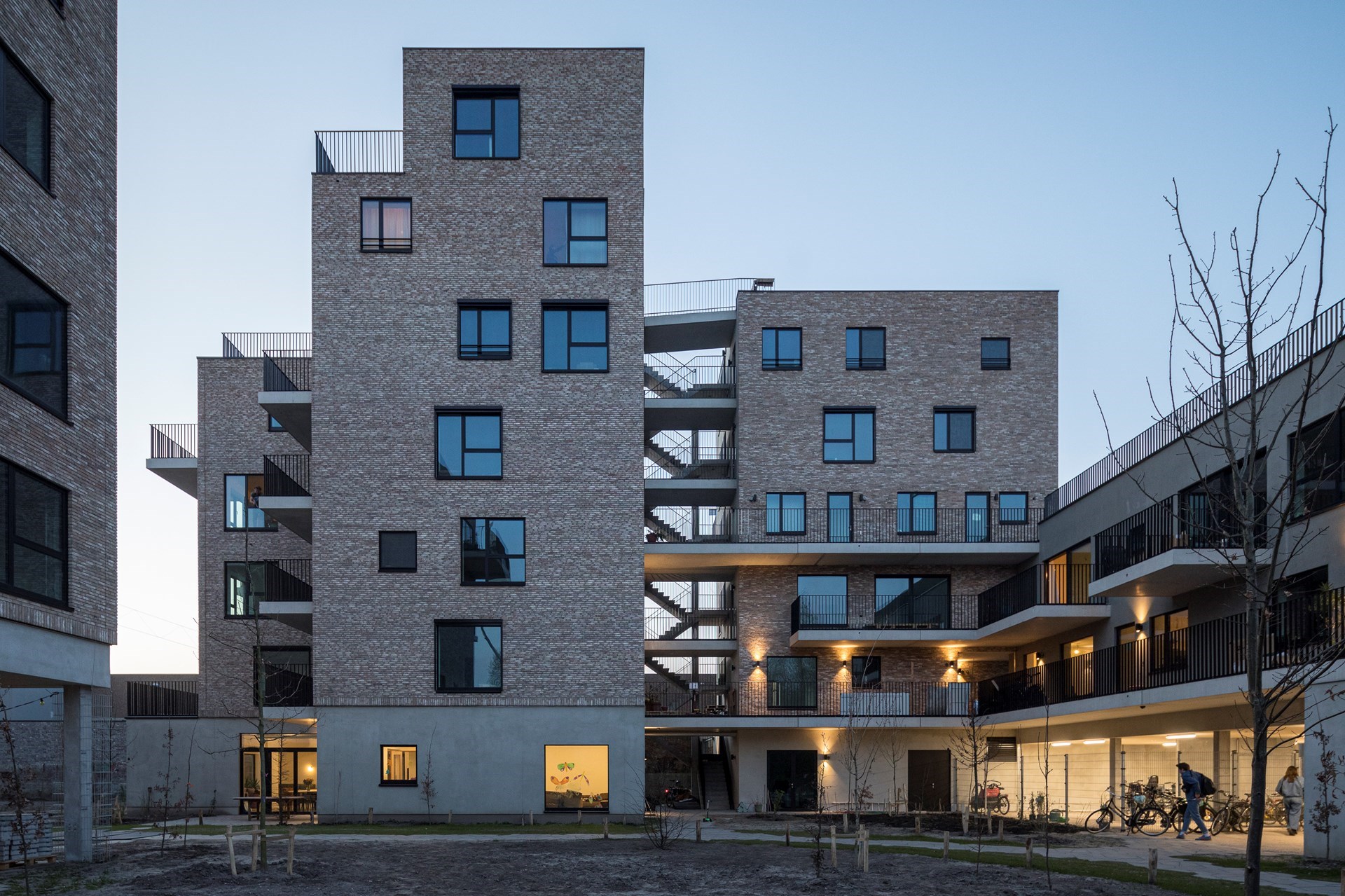 Vlak bij het centrum van Gent transformeerden BOGDAN & VAN BROECK een verlaten fabrieksterrein tot een bloeiende gemeenschap bestaande uit onder andere drie cohousinggroepen met 59 woningen, een wijkgezondheidscentrum, een circuit van collectieve binnen- en buitenruimtes en een atelier met zicht op het Bijgaardepark.