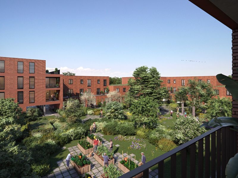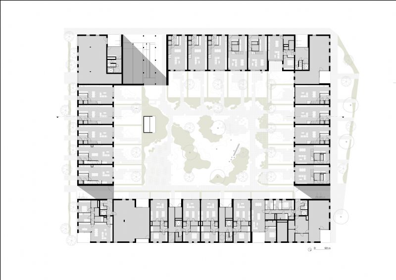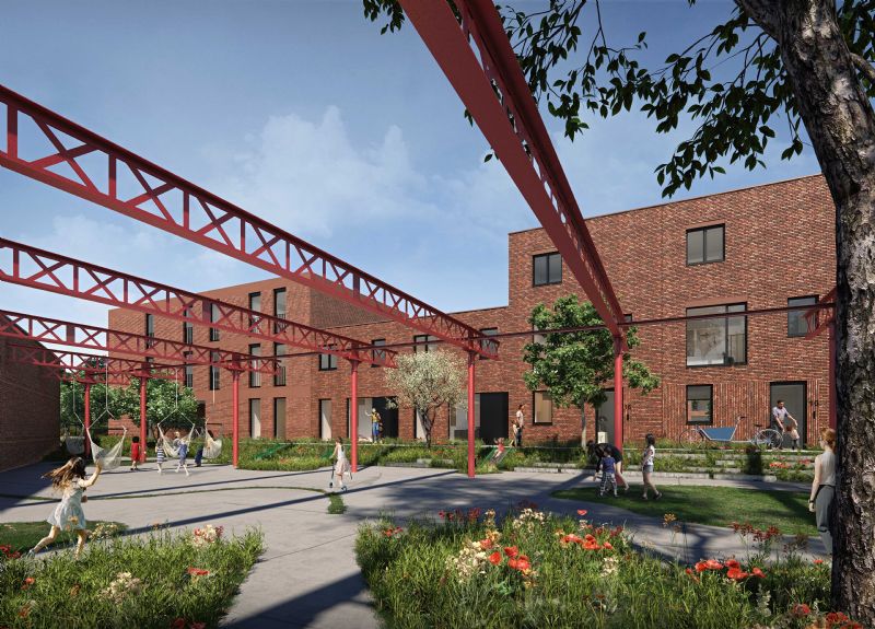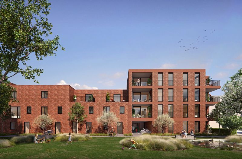 Dit project beslaat een volledig bouwblok binnen het masterplan Pier KORNEL (Lieven Achtergael Architecten). Een mix van 51 compacte tot middelgrote appartementen en 15 eengezinswoningen worden opgetrokken rond een gemeenschappelijk binnenhof en bovenop een ondergrondse parkeergarage. Op de gelijkvloerse hoeken worden buurtfuncties voorzien (crèche, buurtwinkel,..).