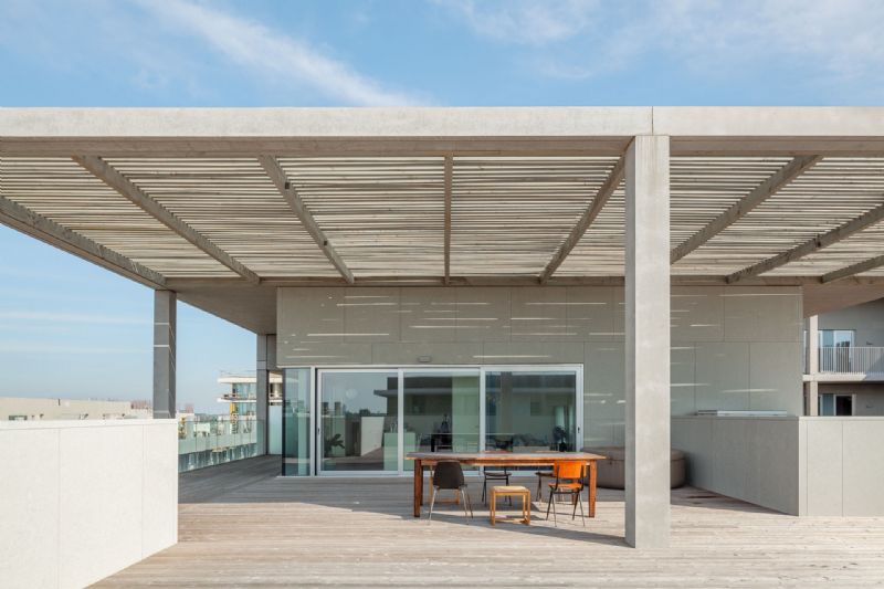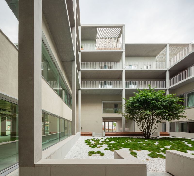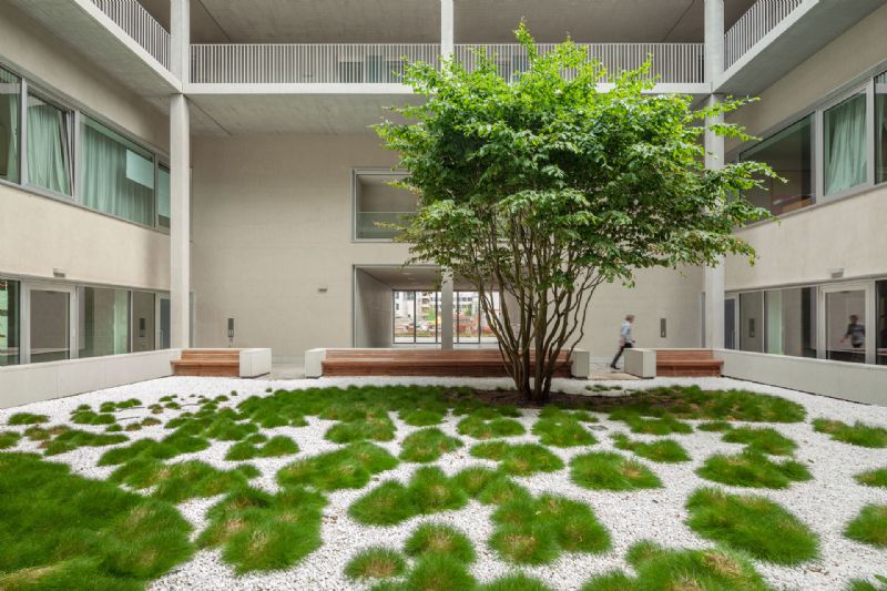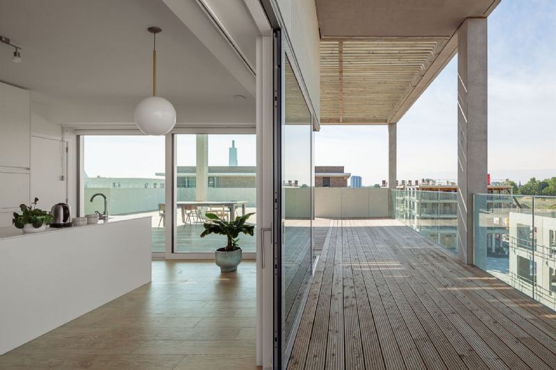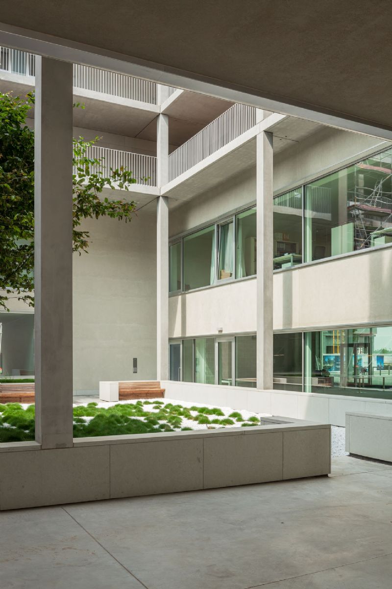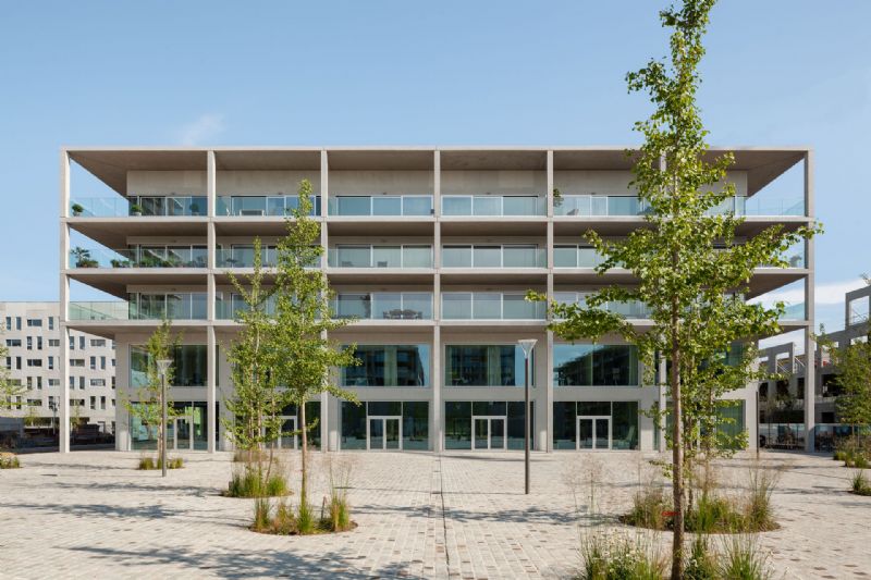 Het plein zal het centrum vormen van de nieuwe wijk met enkele duizenden bewoners. Het woonblok van Atelier Kempe Thill is opgezet met een heldere stapeling van functies. Op de begane grond bevinden zich ruimtes voor diverse commerciële doeleinden, met name restaurants en winkels, om het gebouw zo openbaar mogelijk te maken. De kantoren van de opdrachtgever bevinden zich op de eerste verdieping en zijn toegankelijk via een ruime entree op de begane grond. Deze vormen een gesloten ring rond de binnentuin met doorkijken door het gehele gebouw. Boven de kantoren bevinden zich drie woonlagen die door de toegangsportiek eenvoudig van de binnentuin zijn ontkoppeld en zo een eigen wereld vormen.