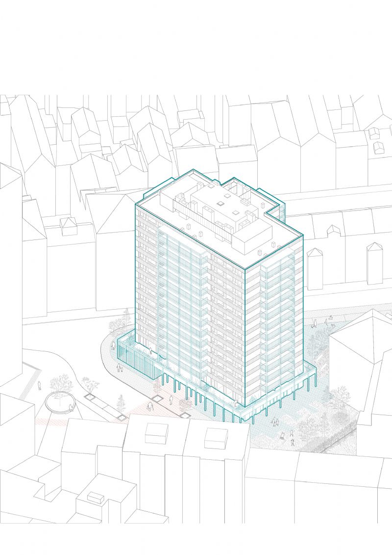 Het project betreft een energetische renovatie van een bestaande woontoren van 93 sociale woningen in de Kanaalzone van Brussel. Hierbij worden zowel de gevel als de technieken aangepast aan de huidige normen. Het project omvat daarnaast een grondige transformatie van het gelijkvloers door de relatie met de omgeving zoveel mogelijk te optimaliseren.