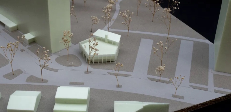 Het dak, zichtbaar vanuit de naastgelegen woontorens, wordt mee ontworpen en vormt zo een essentieel deel van de integratie van het gebouw. Een stukje van het park wordt omhoog getild zodat een planten– of moestuin, een buitenkeuken met barbecue, een bijenhotel of nestkastjes voor vogels hier ongehinderd hun plaats kunnen vinden.
