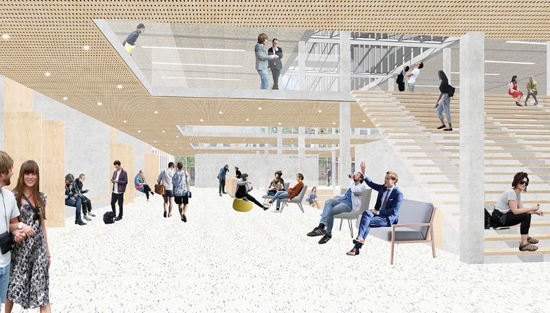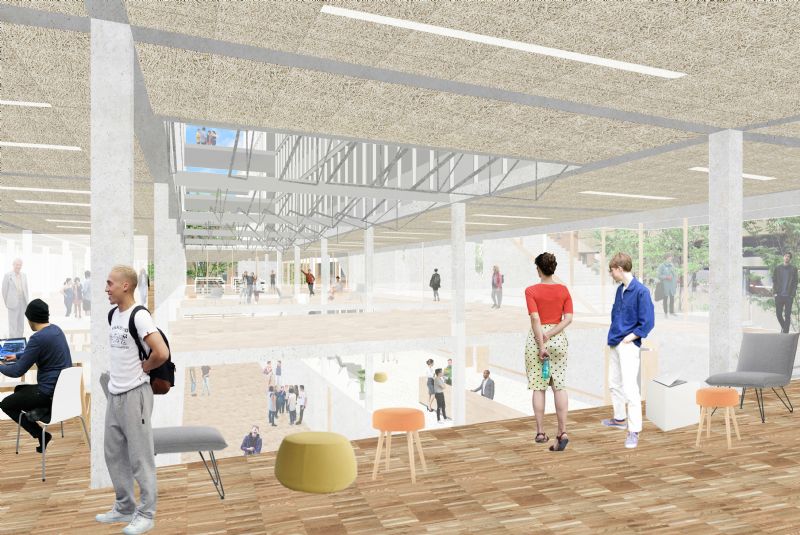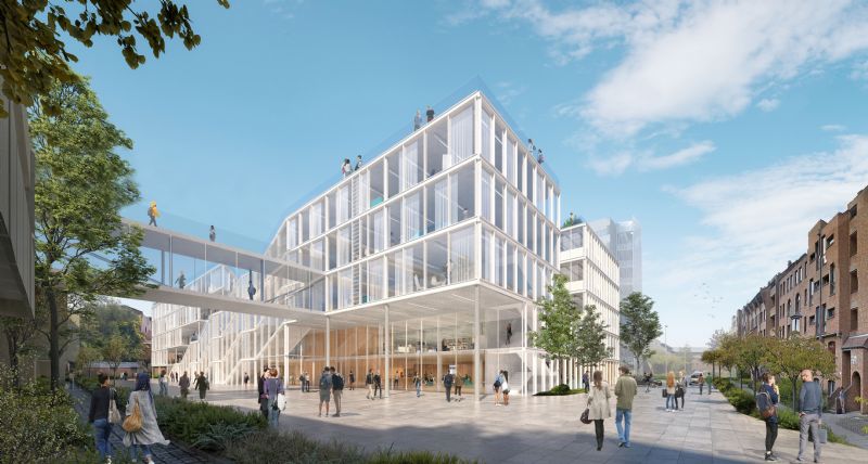 In Sint-Lambrechts-Woluwe laat de Haute Ecole Léonard de Vinci een nieuwe campus optrekken. De ontwerpers vertaalden het complexe programma in naar een compact lineair volume dat de oriëntatie van de omliggende gebouwen volgt. De grote trappenpartij en vele ramen verlenen het gebouw een publiek karakter, wat verder versterkt wordt de publiek toegankelijke sokkel, waar een open leercentrum iedereen uitnodigt op kennis op te doen en uit te wisselen.