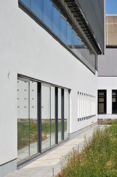 Herbestemming van het oud ziekenhuis tot een centrum voor ondernemersschap, opleiding en ontwikkeling met een bijzondere focus op textiel en innovatie. Het gebouw werd gestript tot op de ruwbouw en voorzien van een nieuwe geïsoleerde schil en tweede huid in textiel. Hiermee wordt niet alleen verwezen naar de nieuwe functie van dit gebouw, maar ook ingespeeld op eisen inzake performante zonnewering en energieprestatie