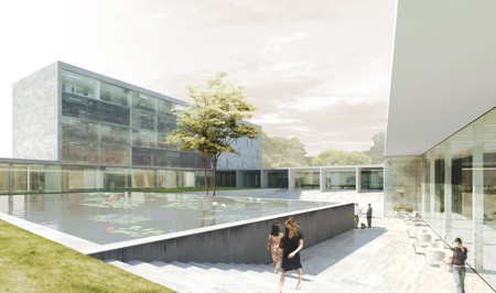 Het gebouw voor de nieuwe hoofdzetel voor CIPAL ligt aan een nieuw geïntroduceerde ‘park-as’ en de bouwdelen zijn gegroepeerd om een centrale tuin. In deze tuin is de fundering van het een bestaand gebouw (getransformeerd tot een waterpartij), het centrale element. De andere buitenruimtes liggen, deels verlaagd, hier omheen. Het gebouw kent een duidelijke indeling van publiek naar privaat. Langs de ‘park-as’ liggen de cafetaria en auditorium als meest publieke deel van het gebouw. De middenzone bestaat uit vergaderzalen en ruimte voor de Raad van Bestuur. Tezamen vormen deze delen een zogenaamde 24-uurs-zone, die apart kan worden afgesloten van de kantoren en laboratoria. De zone aan de ring is alleen toegankelijk voor werknemers en is een efficiënte stapeling van kantoorverdiepingen waarin zowel landschapskantoren als klassieke kantoren kunnen worden gerealiseerd. Op het gelijkvloers bevinden zich hier de verschillende opslag en ICT functies. Architecturaal maakt het gebouw een gebaar naar de Ringlaan door deze met geluid en zon belaste zuidgevel als semi-gesloten schil uit te voeren. Intern bevinden zicht aan deze zijde de meer private functies. Deze gevel omarmt het horizontale vlak dat het dak voor de 24-uurs-zone vormt. Naast de energetische aspecten voor de keuze van deze volumes zorgt dit ook voor een oase van rust in de centrale binnentuin.