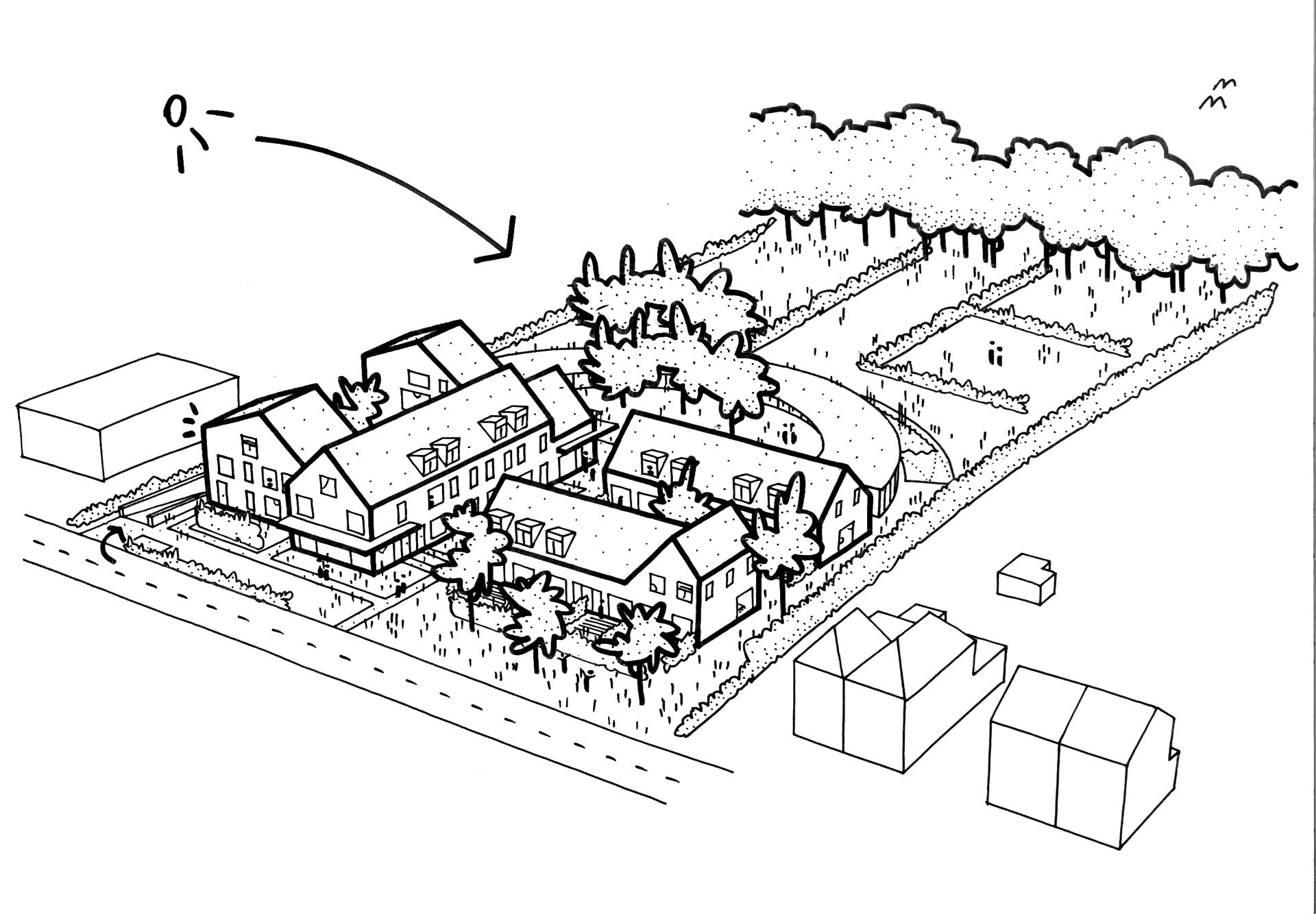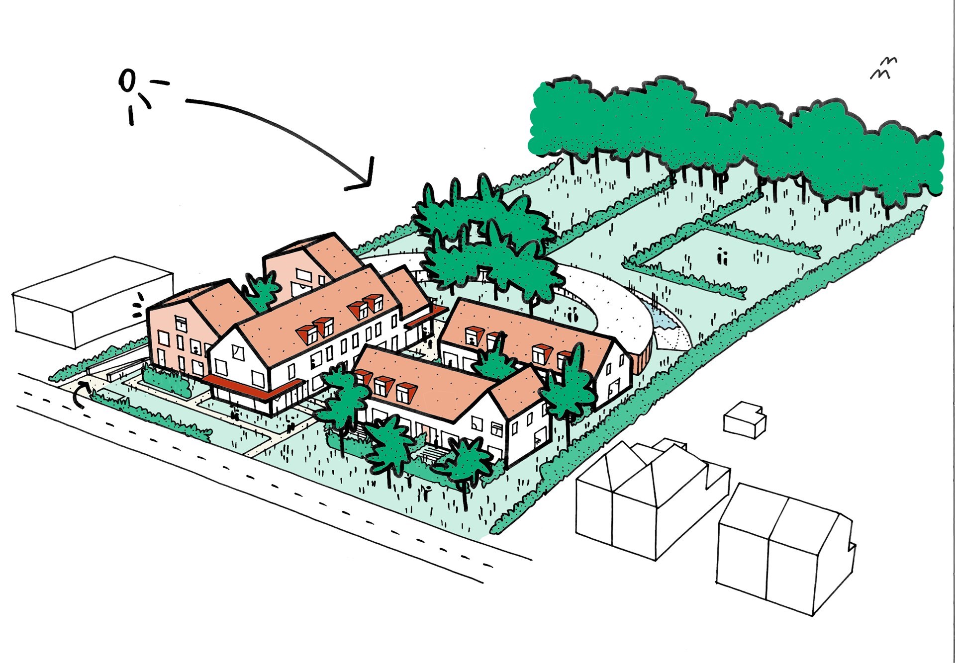 De 16 woningen, met 1 tot 4 slaapkamers, beschikken allen over een privéterras en/of -tuintje. De woningen worden verwarmd door middel van vloerverwarming, aangedreven door geothermische warmtepompen. De gemeenschappelijke delen beschikken over zonnepanelen, dat is ook mogelijk voor de woningen.