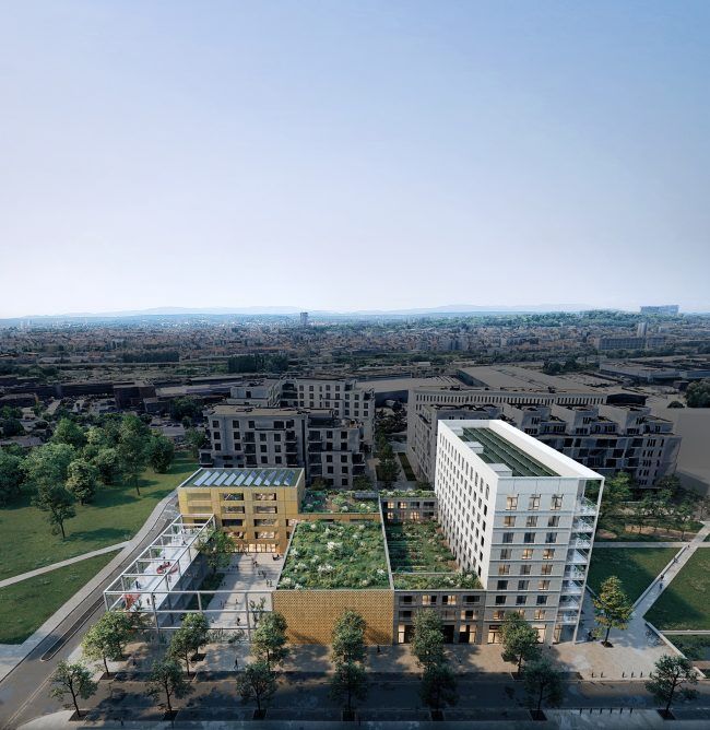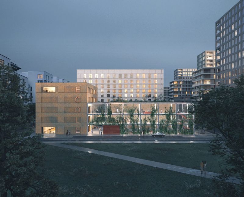 B-architecten, B-bis architecten en VELD hebben samen de ontwerpwedstrijd gewonnen voor de laatste fase in de ontwikkeling van City Dox in de Brusselse kanaalzone. Projectontwikkelaar Atenor lanceerde de wedstrijd in maart 2020 samen met de Brusselse bouwmeester. Het nieuwe mixed-use gebouw - een combinatie van woningen, winkels en een middelbare school - definieert in sterke mate de identiteit van City Dox. In het bijzonder de open structuur die de speelplaats omringt presenteert zich als een grootstedelijk welkom niet alleen voor haar gebruikers maar voor de gehele site