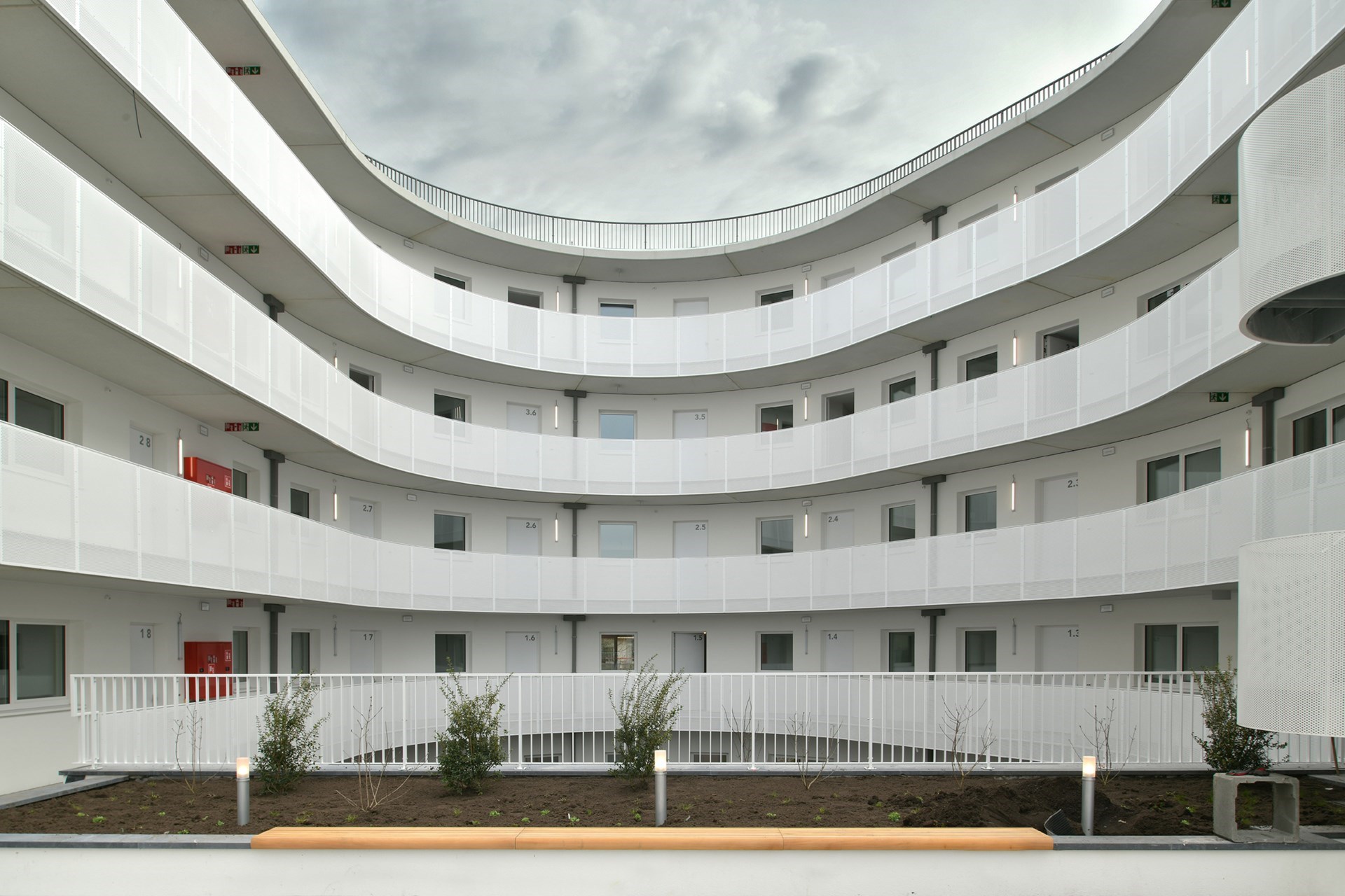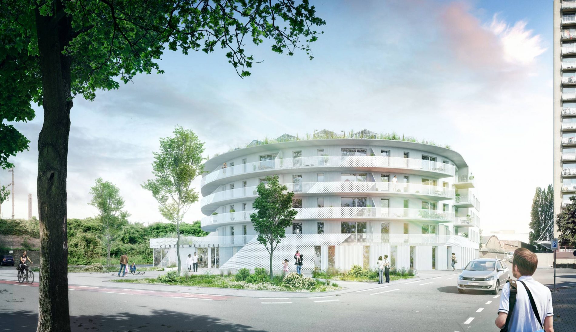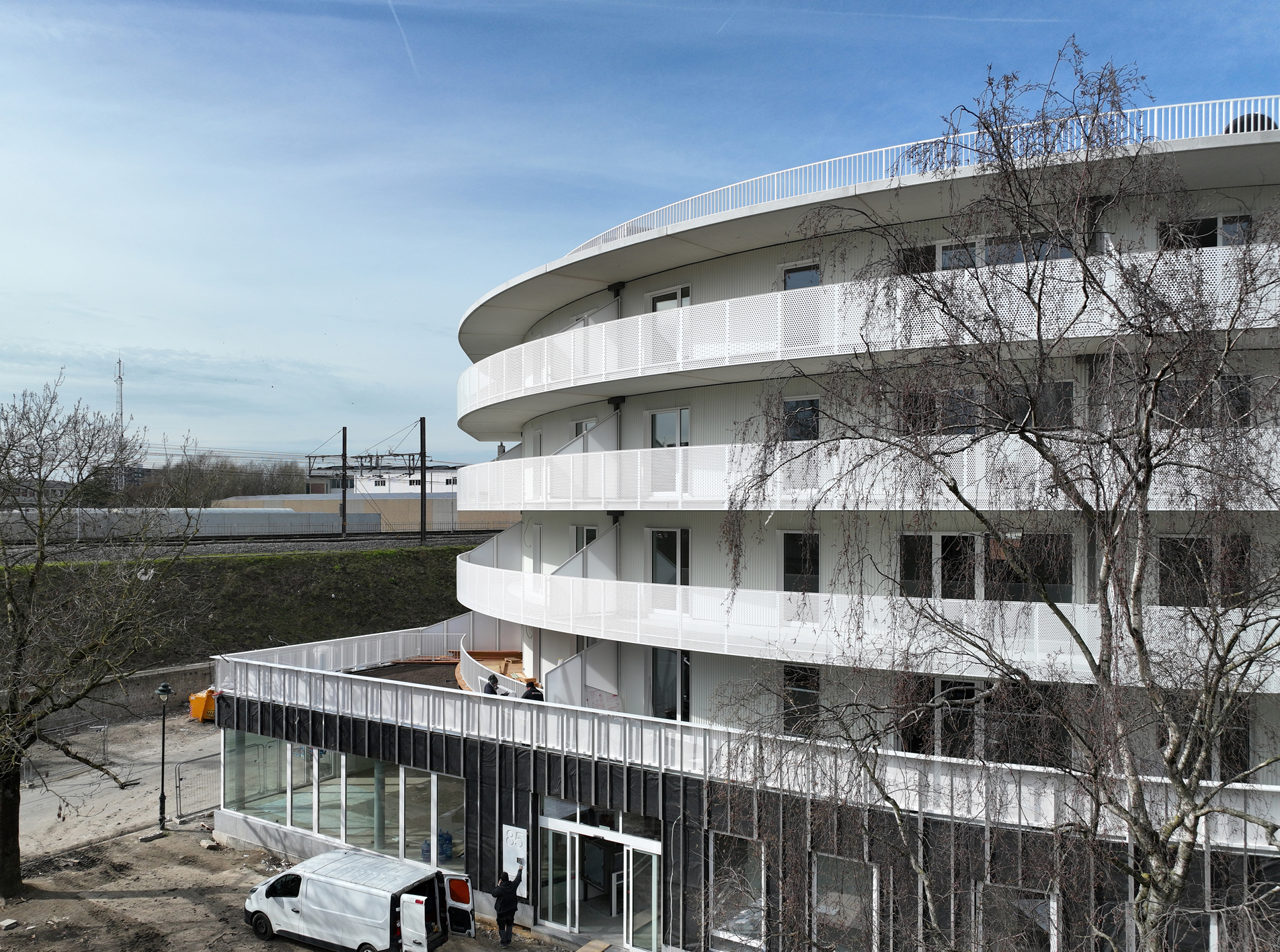 De architecturale bijzonderheid zit hem in de hoefijzervorm van het gebouw. Die sluit harmonieus aan op het toekomstige Grondelsplein. Bovendien kan dankzij die vorm de binnenkant van het huizenblok zo worden ingericht dat de privacy van de bewoners wordt gevrijwaard en ze geen hinder van de nabije spoorlijn ondervinden.