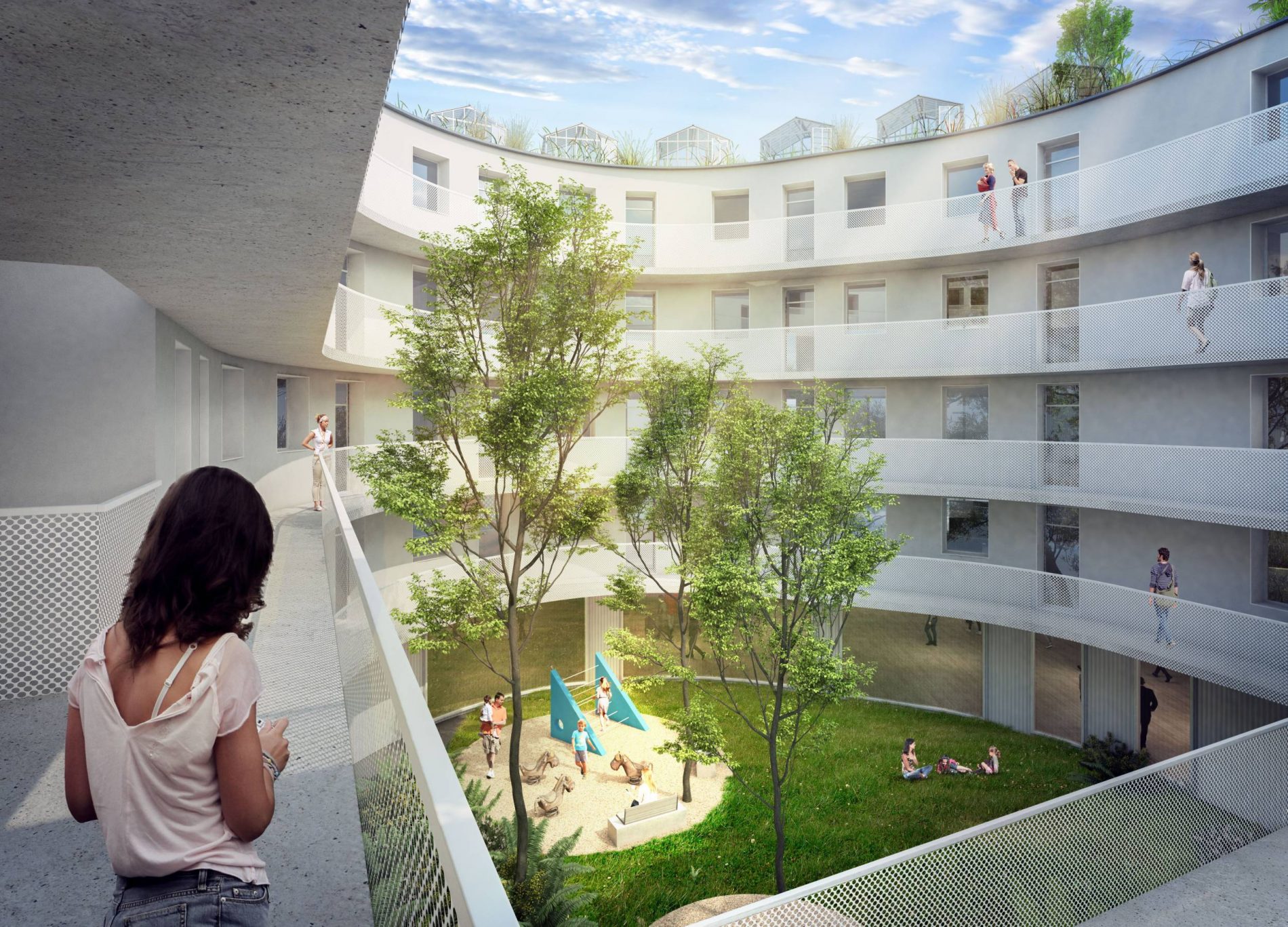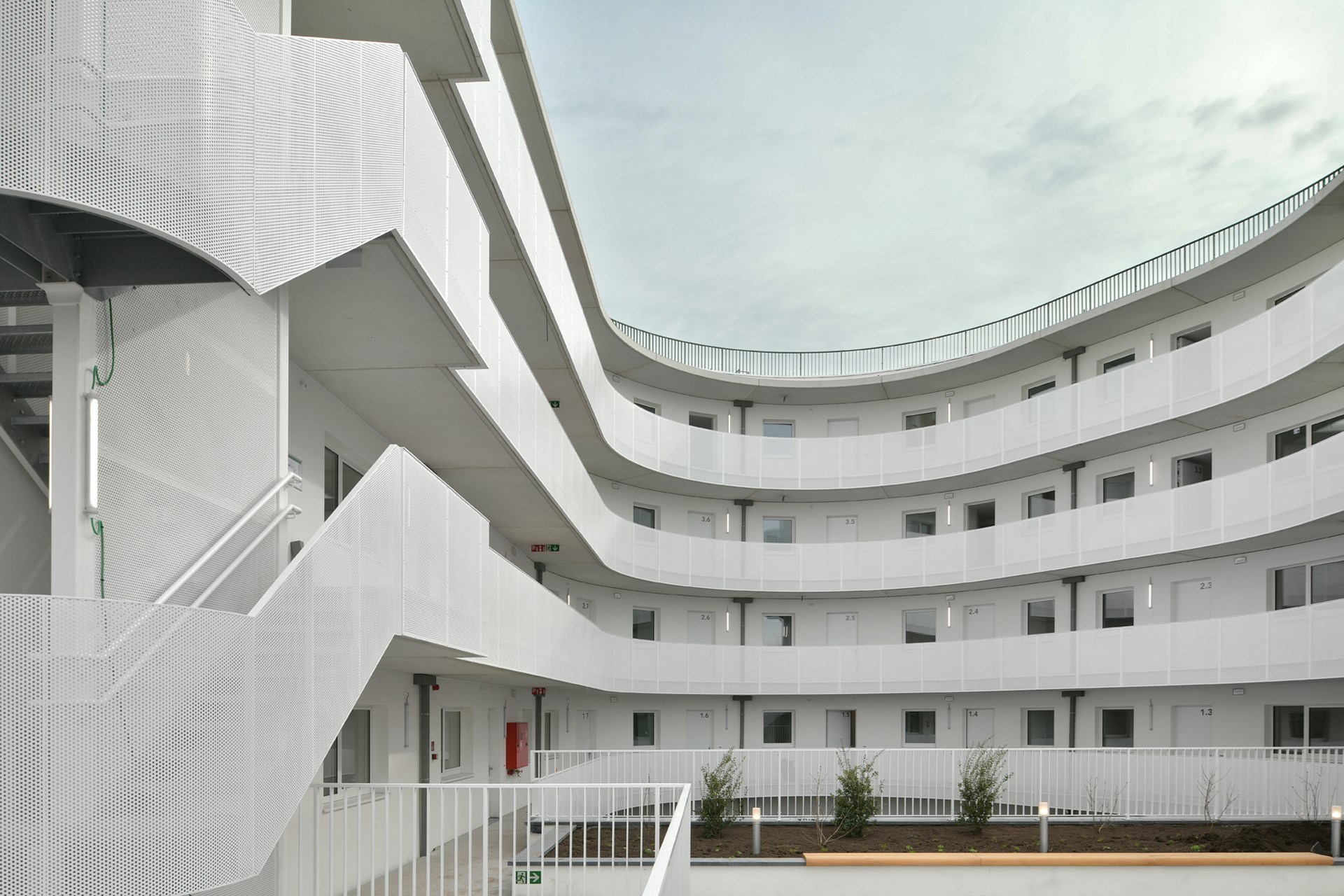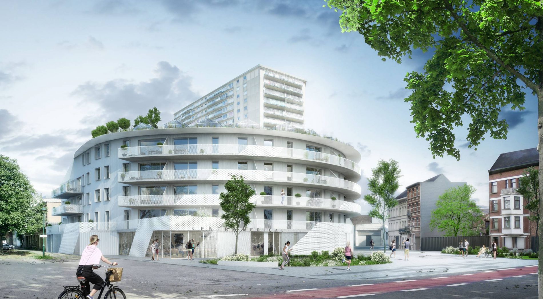 De architecturale bijzonderheid zit hem in de hoefijzervorm van het gebouw. Die sluit harmonieus aan op het toekomstige Grondelsplein. Bovendien kan dankzij die vorm de binnenkant van het huizenblok zo worden ingericht dat de privacy van de bewoners wordt gevrijwaard en ze geen hinder van de nabije spoorlijn ondervinden.