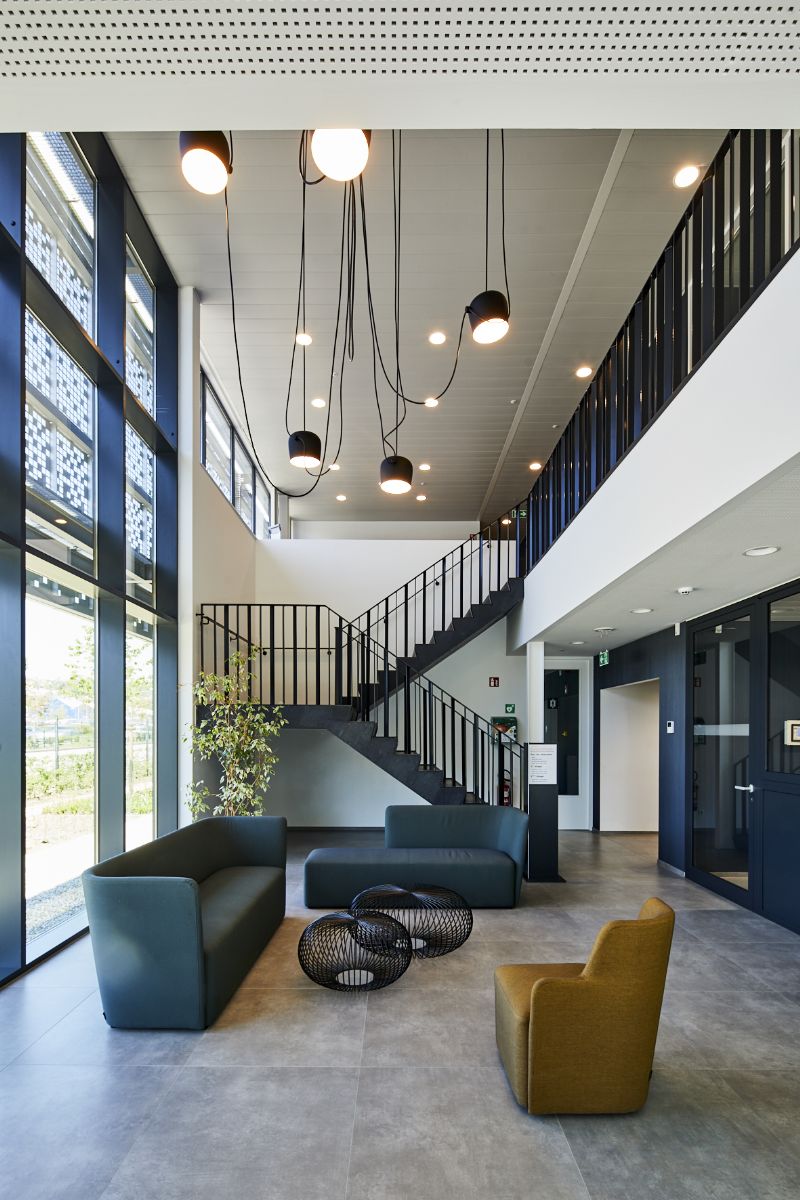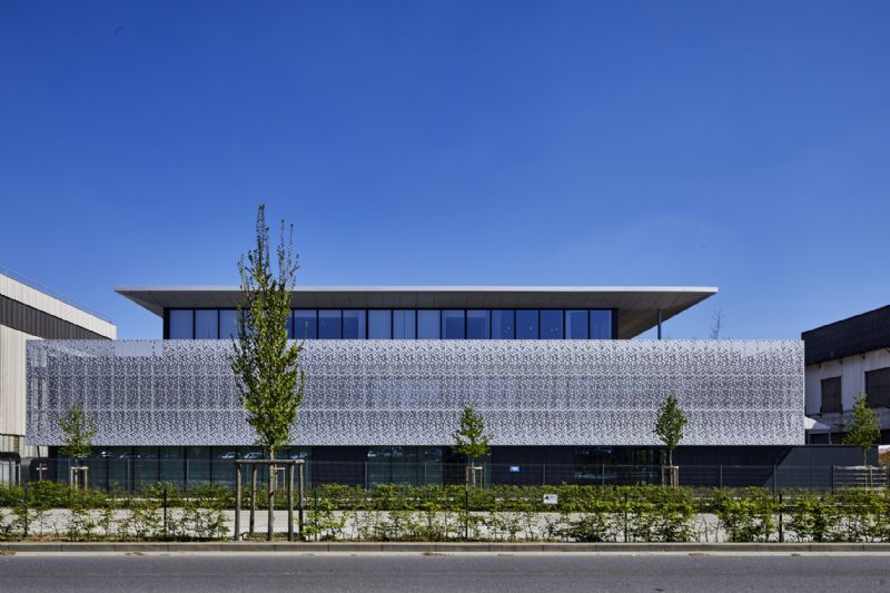 In Seraing realiseerde Mathieu Gijbels een gloednieuw kantoorgebouw voor CMI International. De opvallende gevel van deze nieuwbouw springt onmiddellijk in het oog. Het is zowel esthetisch als zonwerend.