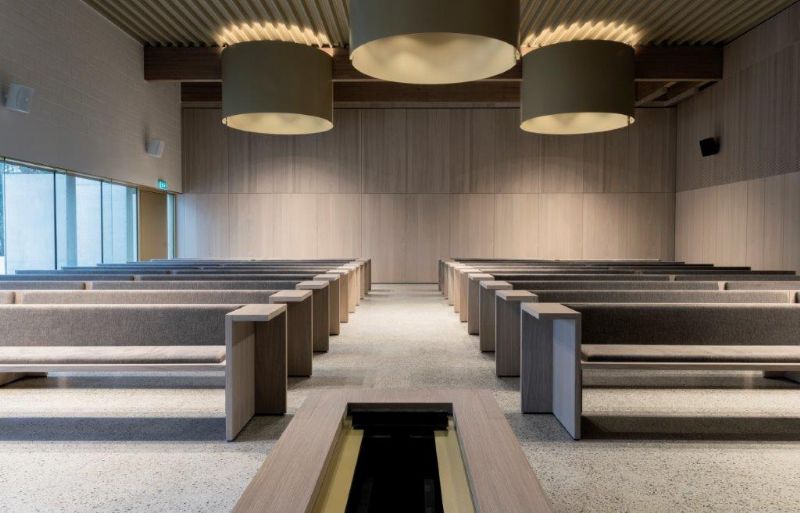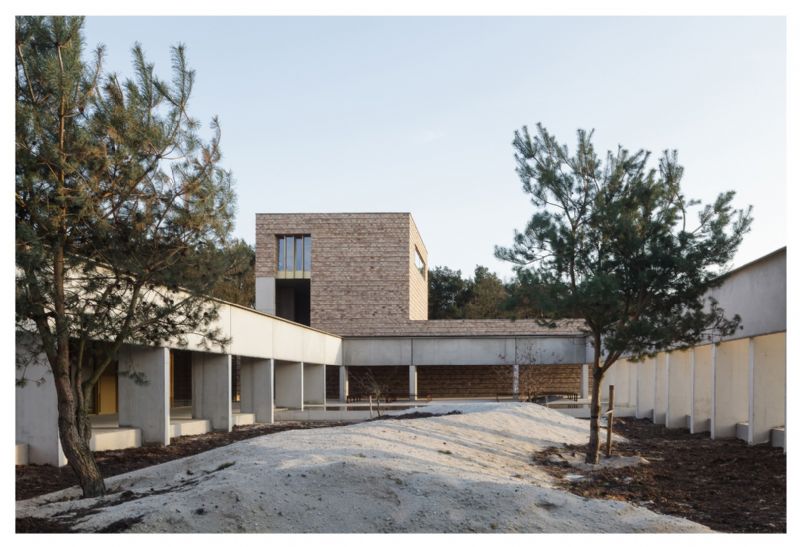 Midden in de Lommelse duinen, in een langgerekt complex dat op termijn zal versmelten met het omringende landschap, kunnen vrienden en familieleden voortaan op gepaste wijze afscheid nemen van hun gestorven geliefden. De overweldigende natuurpracht wordt ervaren als een troostende arm om de schouder en fungeert – wars van alle religieuze symboliek – als een unieke bron van spirituele verdieping.
